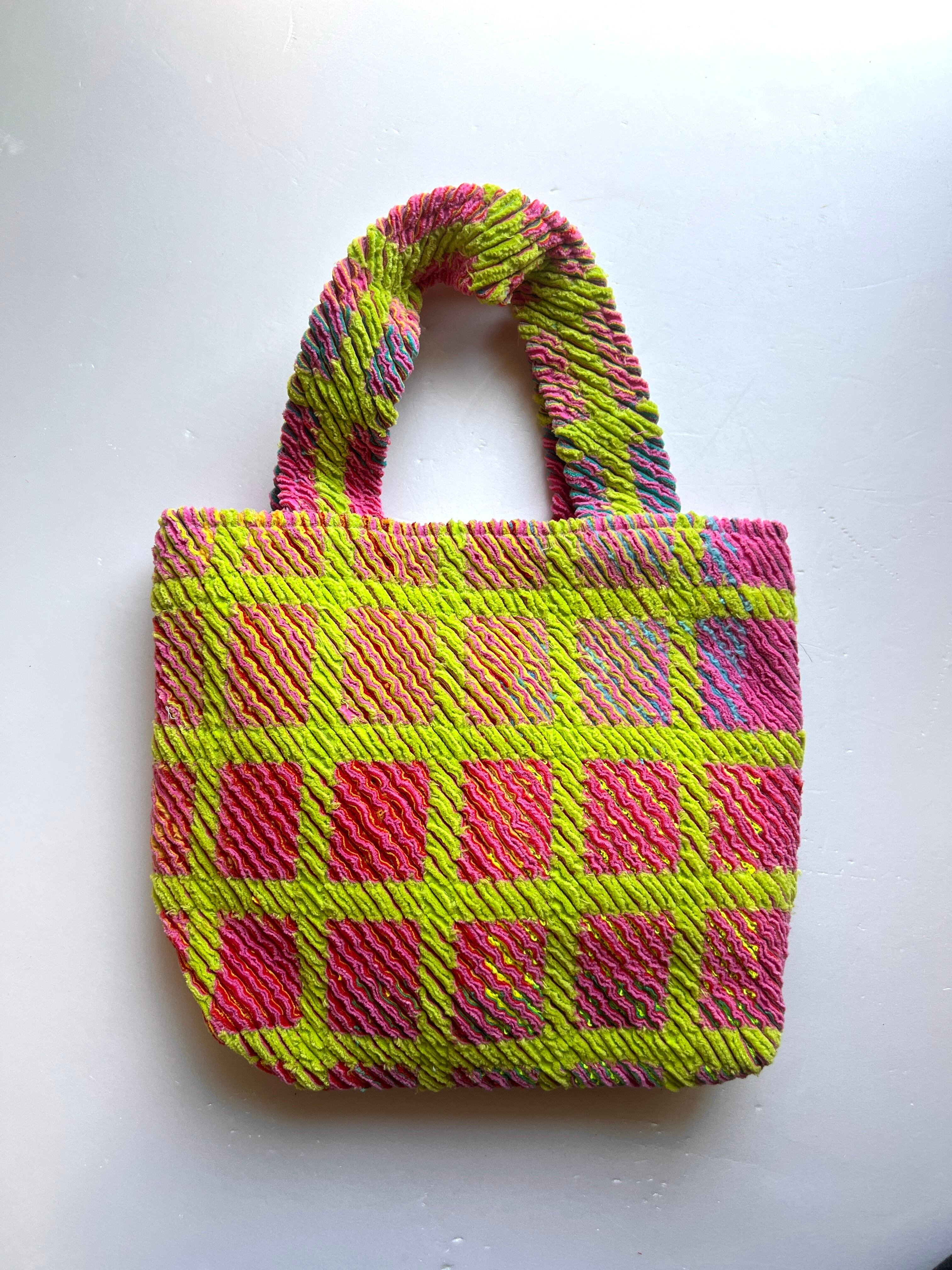 トートバッグ◯チェック/ピンク✖️ライトグリーン