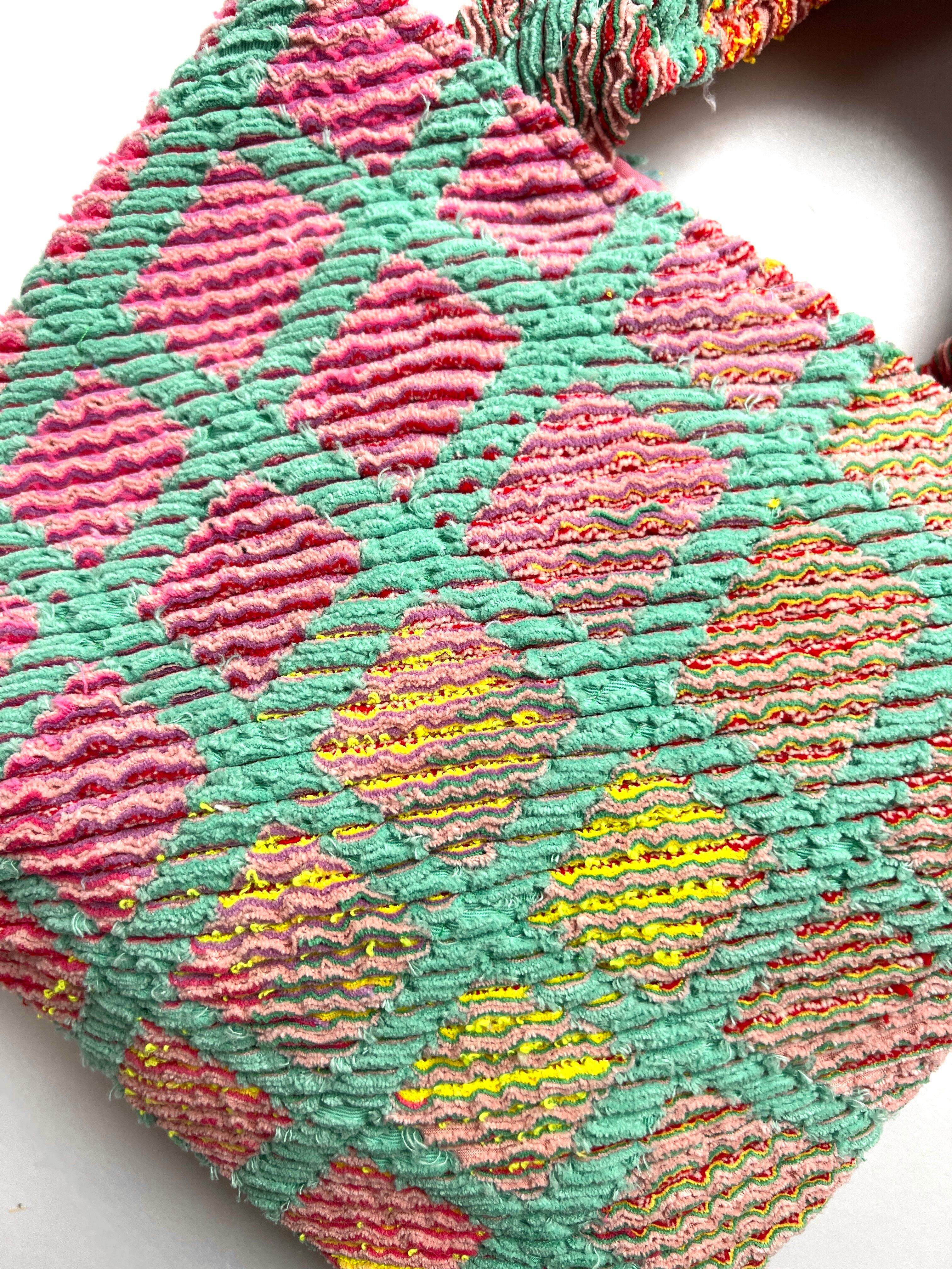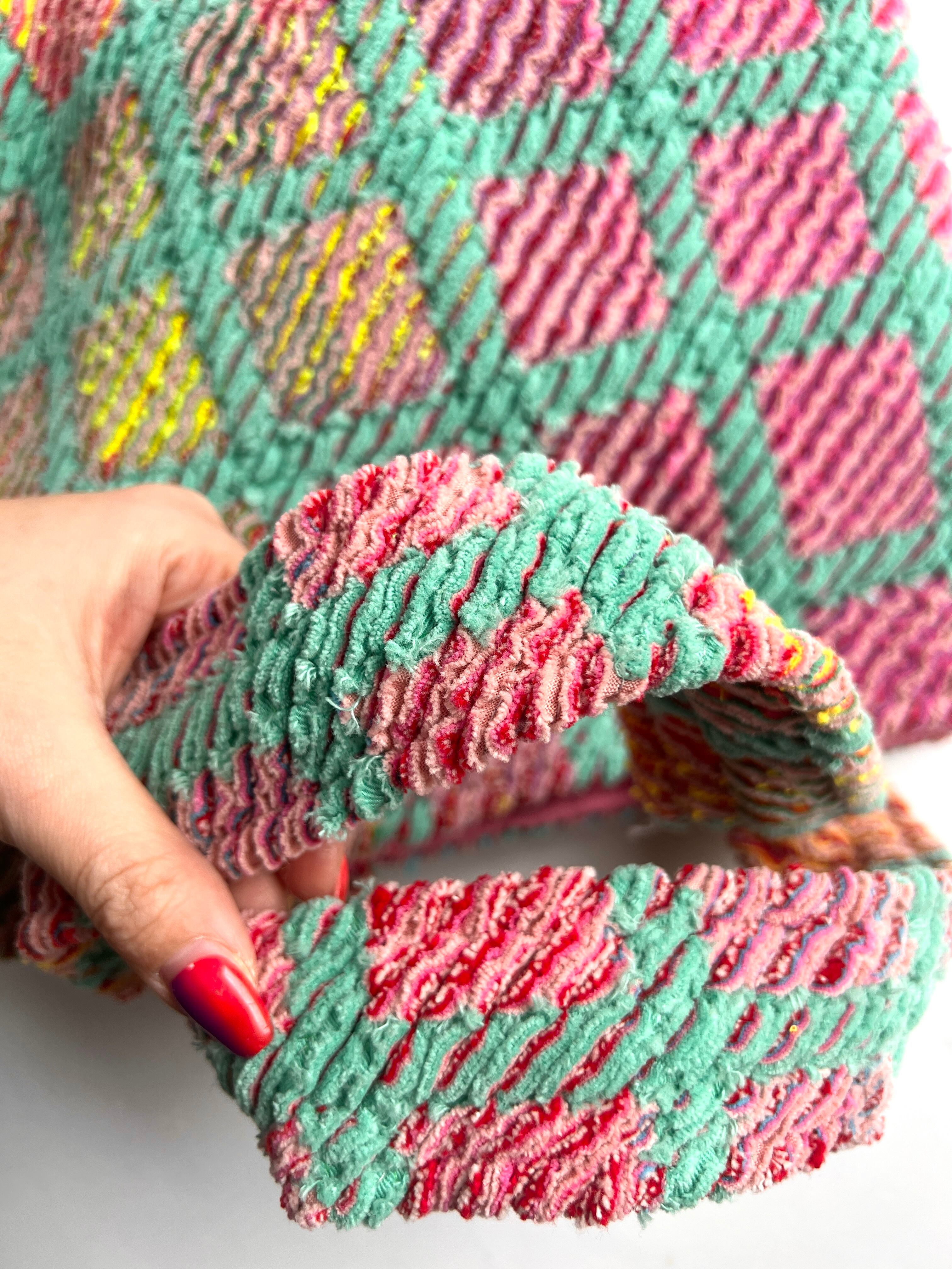 トートバッグ◯レッドリボン/ピンク✖️グリーンチェック