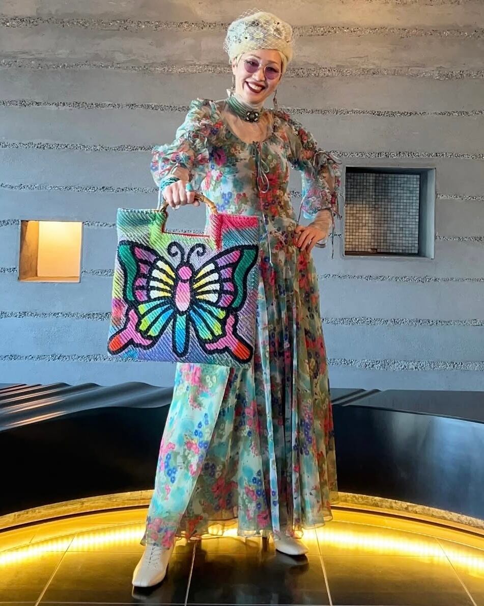 マチなしタイプで、絵画を持ち歩くような形のバンブーバッグ。