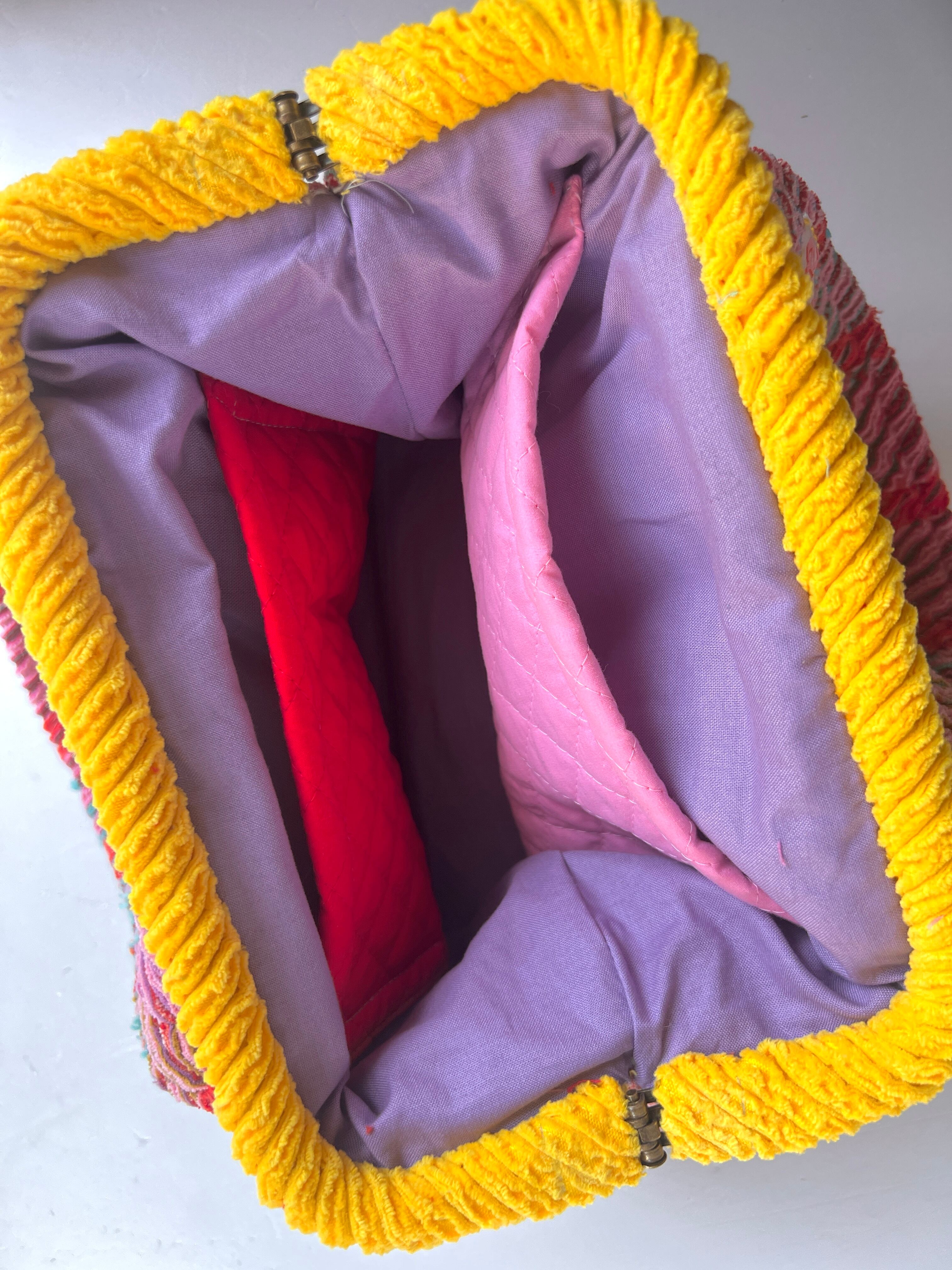 アルミの口金入りでパカっと開くボストンバッグ。コロンとした形が可愛いです。