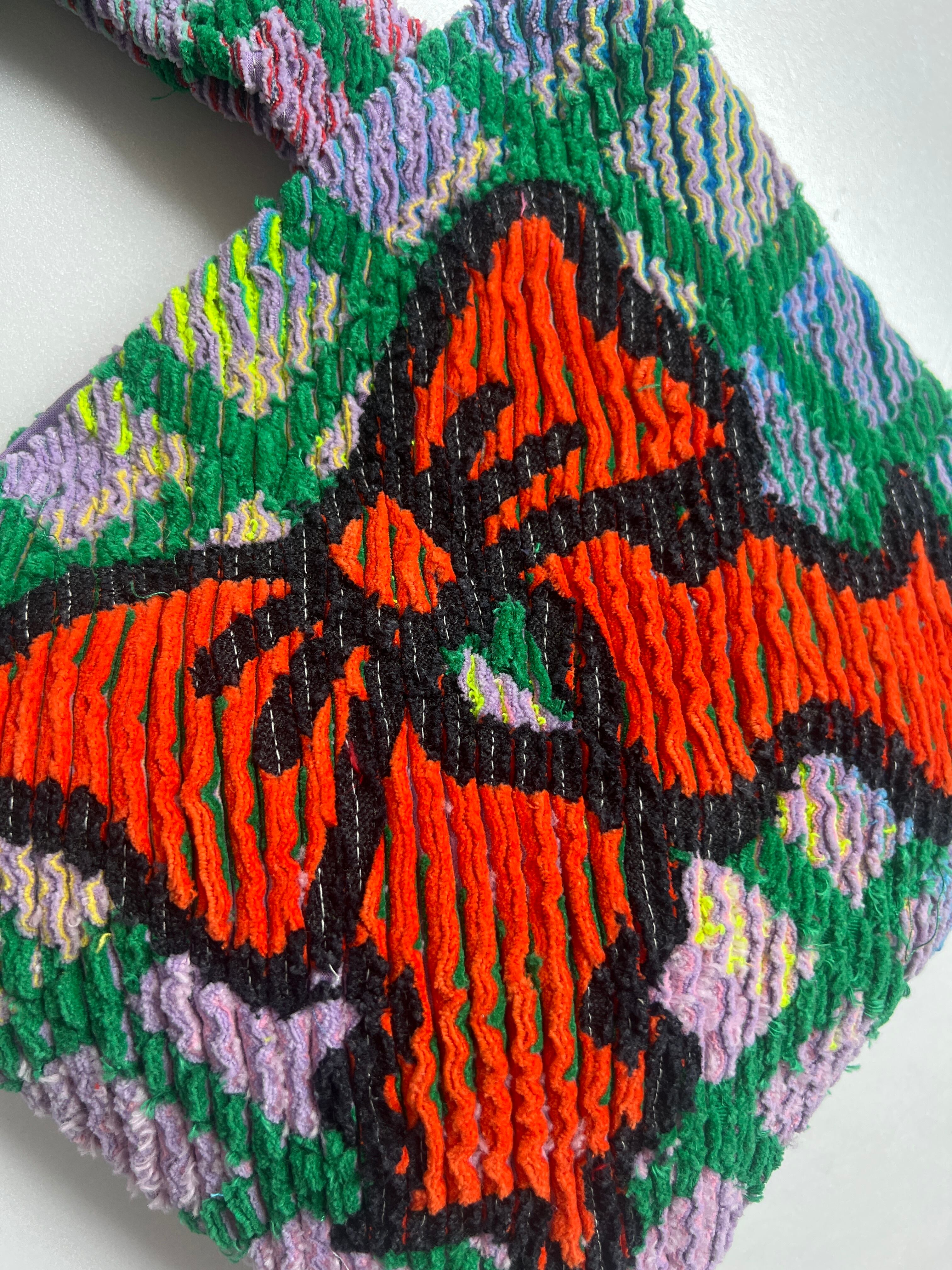 トートバッグ◯オレンジリボン/パープル✖️グリーンチェック