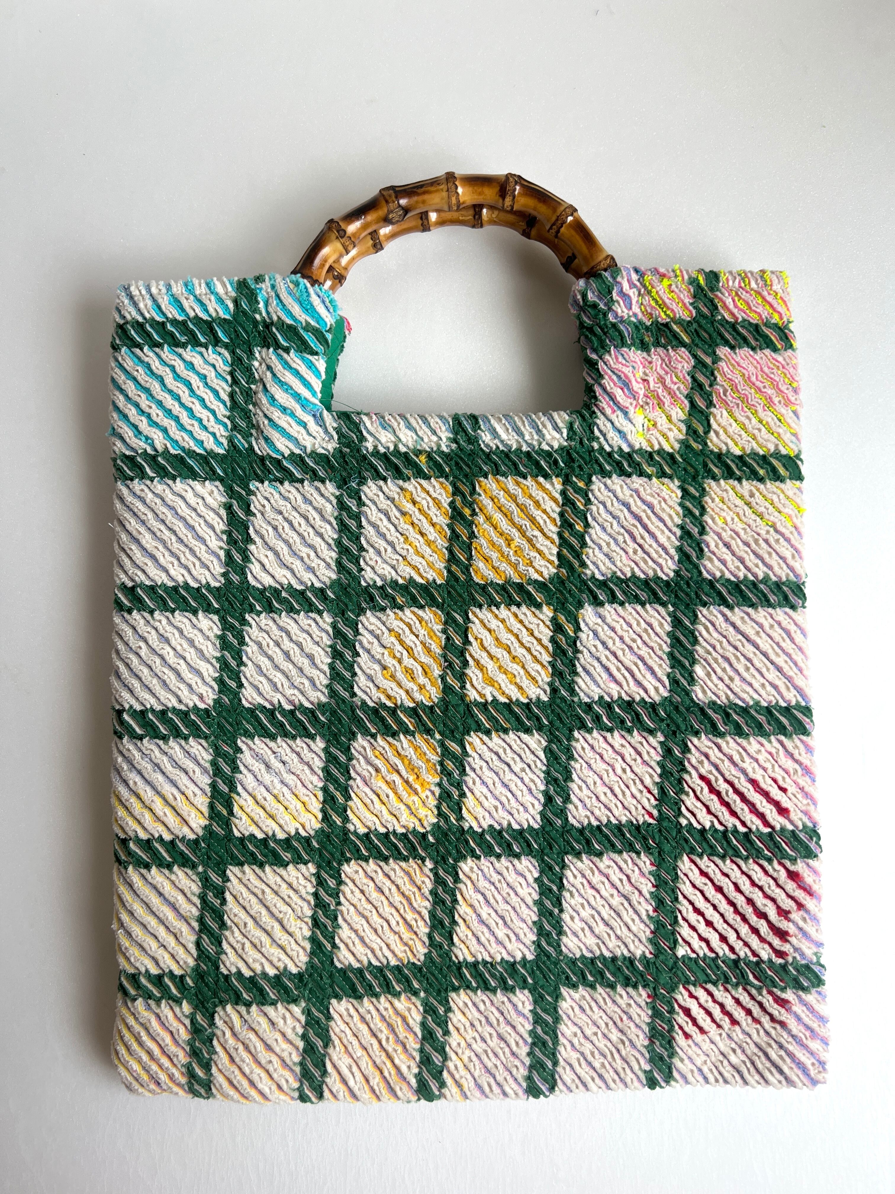 マチなしタイプで、絵画を持ち歩くような形のバンブーバッグ。