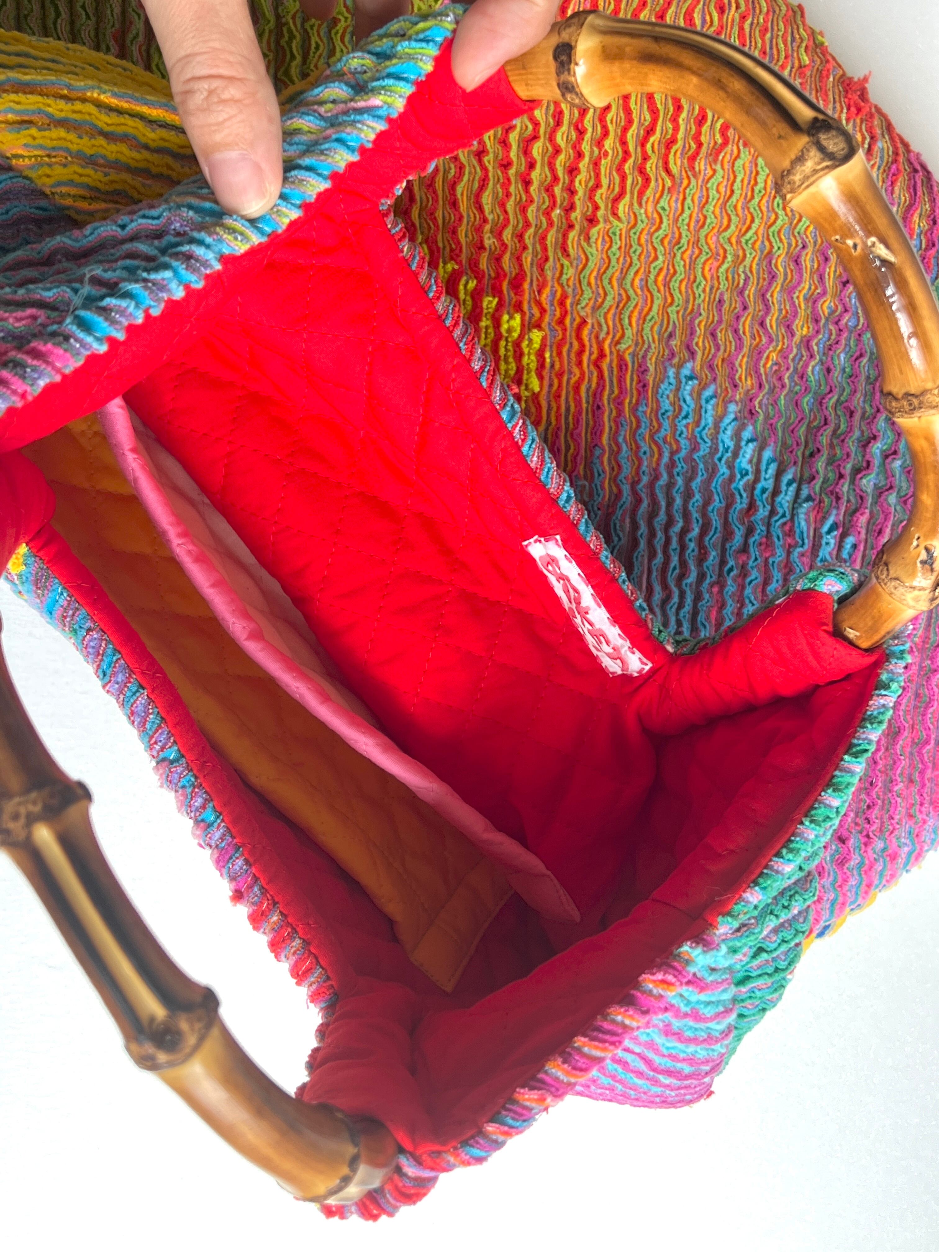 マチつきバンブーバッグ◯カラフルミックスキルト