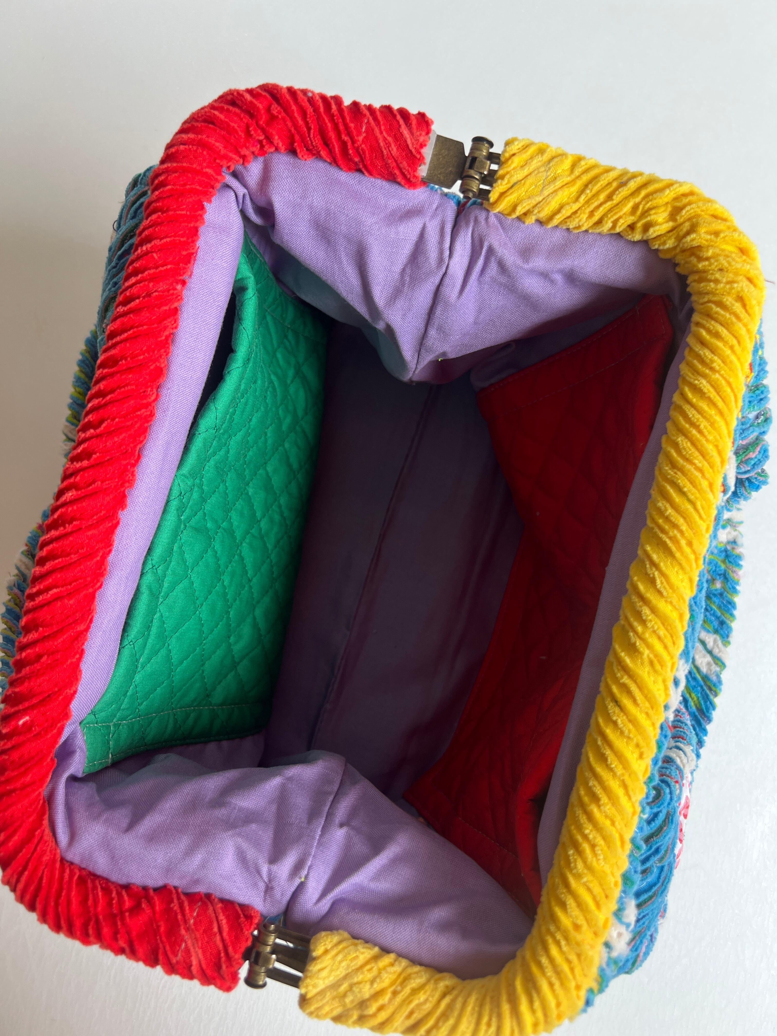 アルミの口金入りでパカっと開くボストンバッグ。コロンとした形が可愛いです。