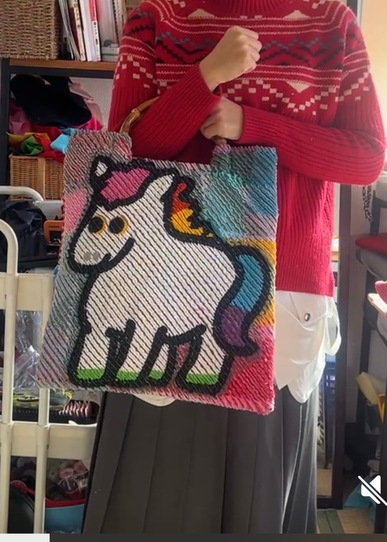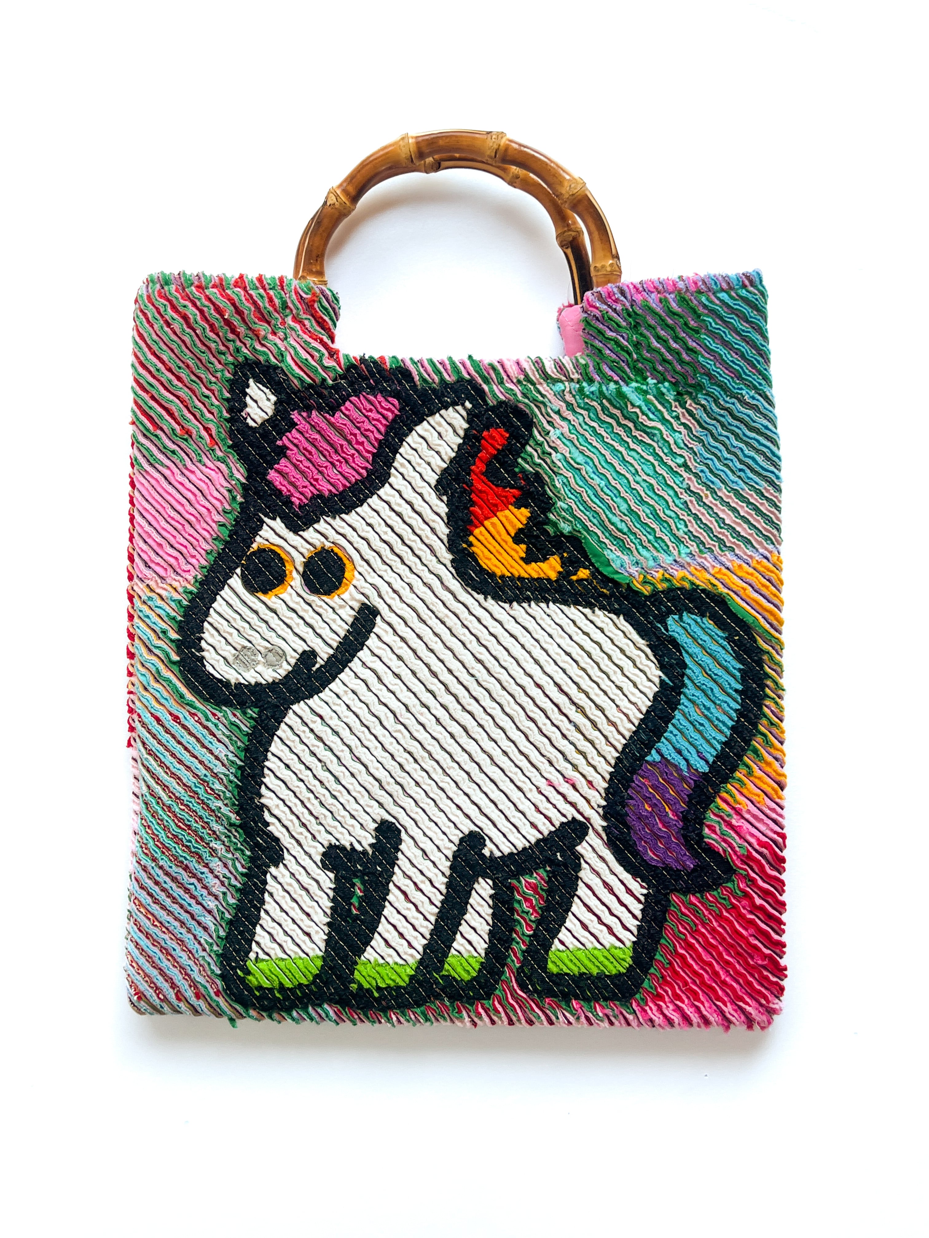 【午年開運】バンブーバッグ◯かっこいいレインボーのタテガミ馬