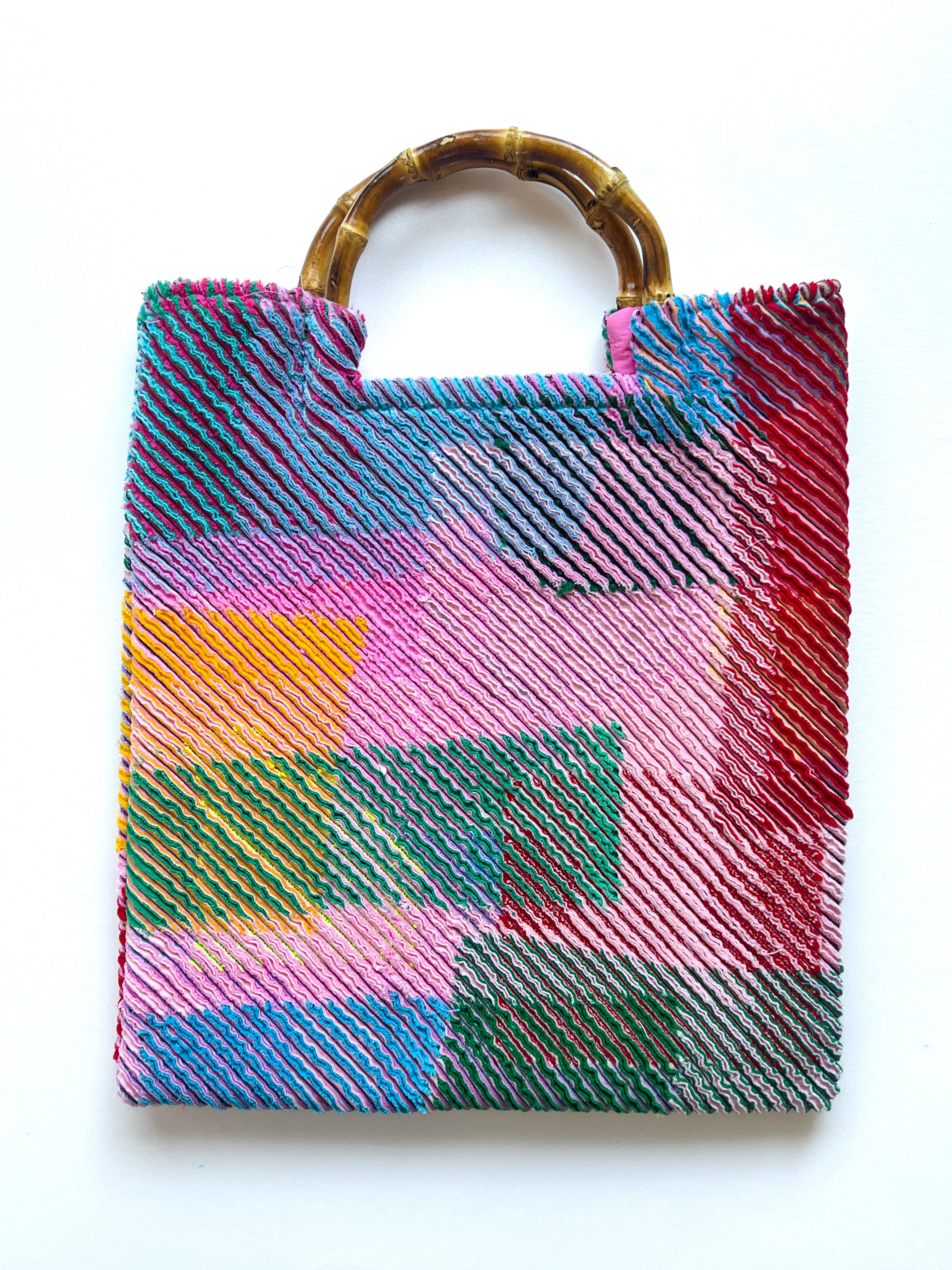 マチなしタイプで、絵画を持ち歩くような形のバンブーバッグ。