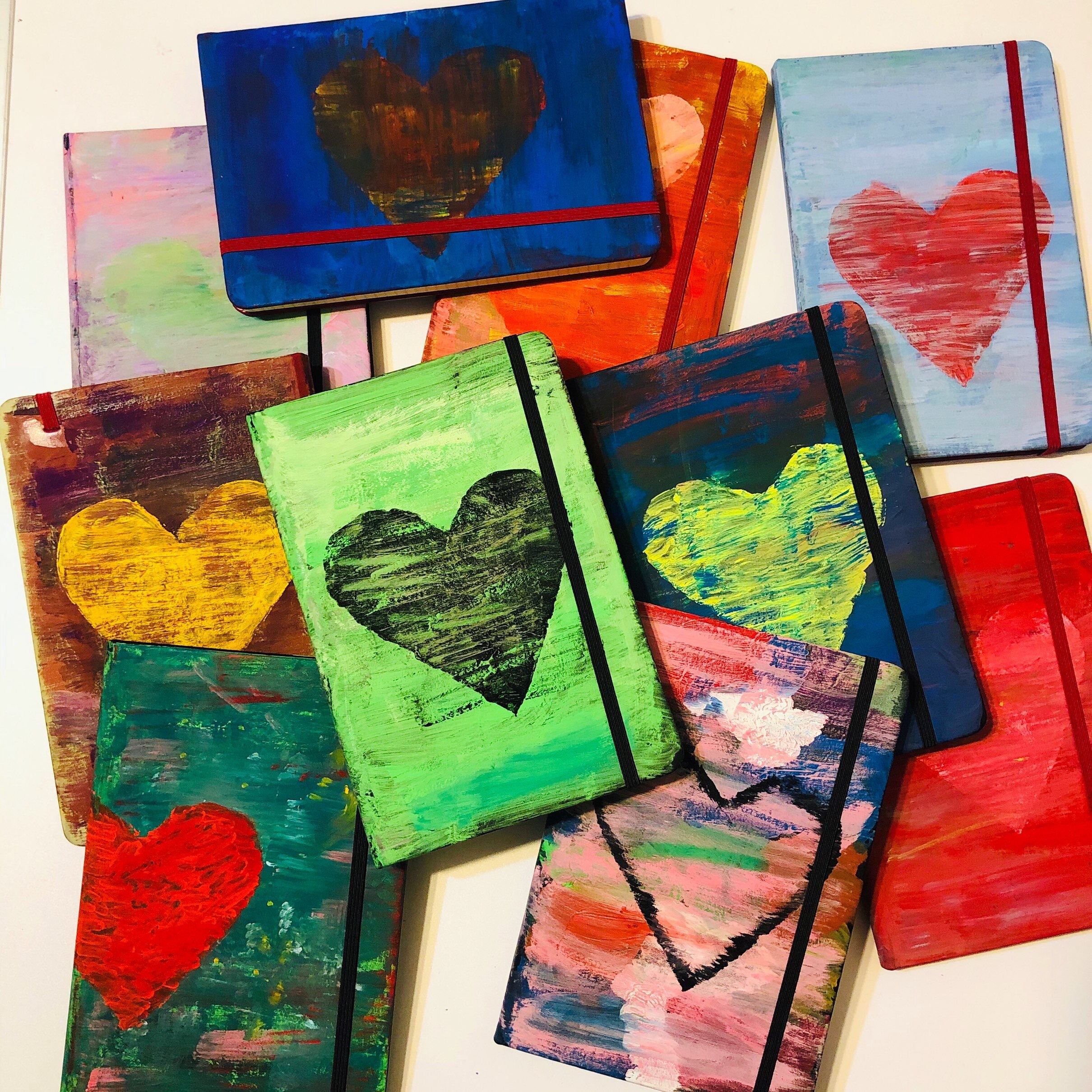 ◯ハンドペイントのため、絵具の盛り上がりや色むらがあります。またノートの中身やゴム部分に、若干絵具がついている場合があります。神経質な方のご購入はお控えください。