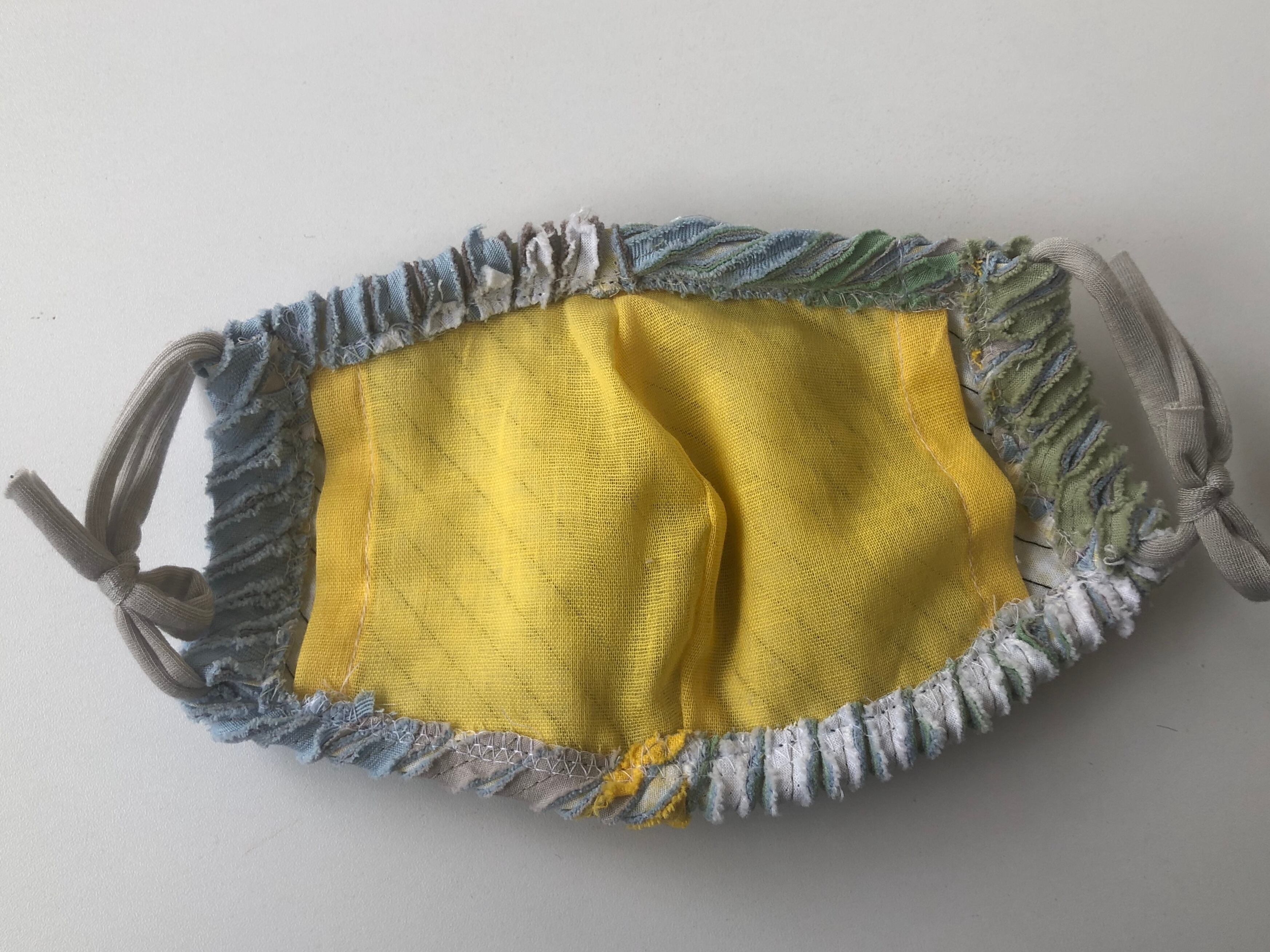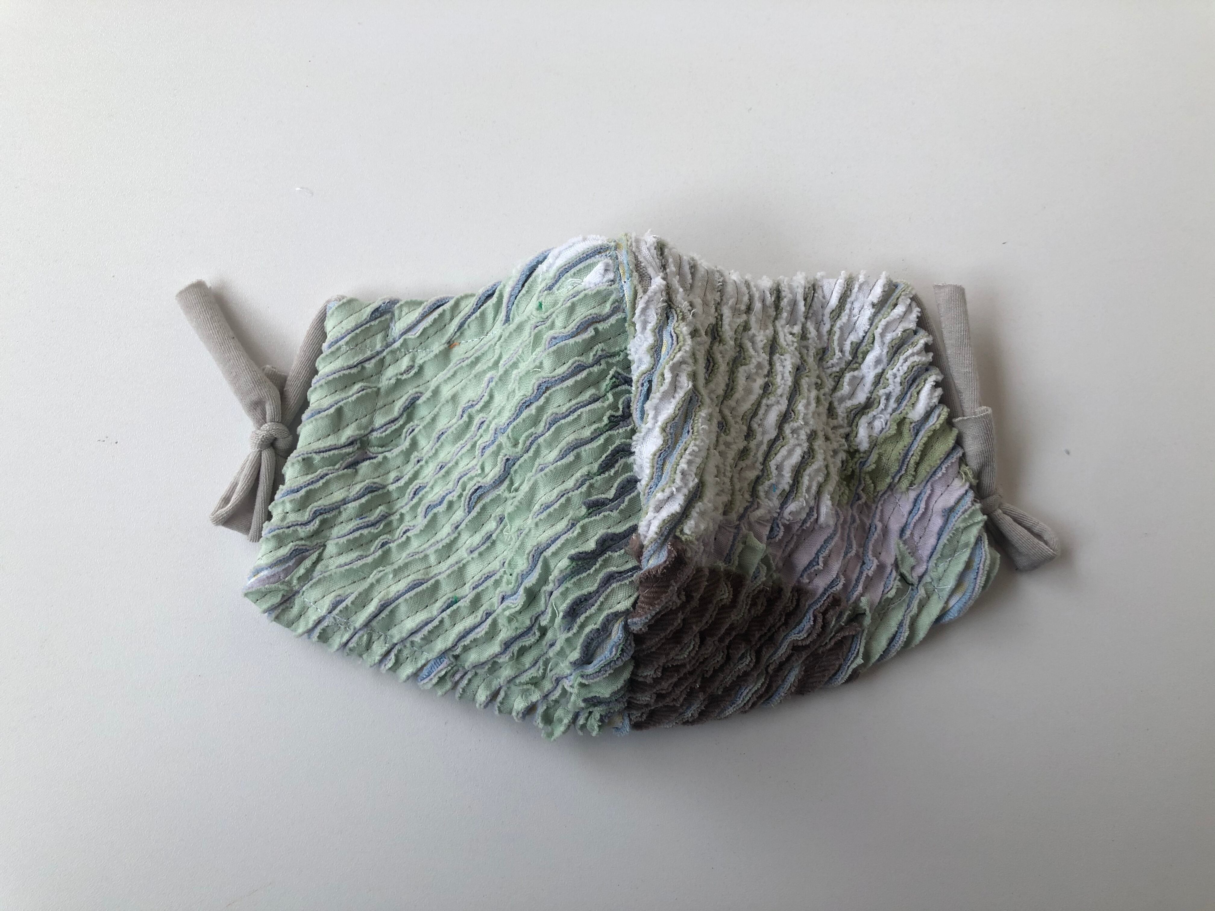 スラッシュキルトの技法で素材から作られた一点もののマスクです。