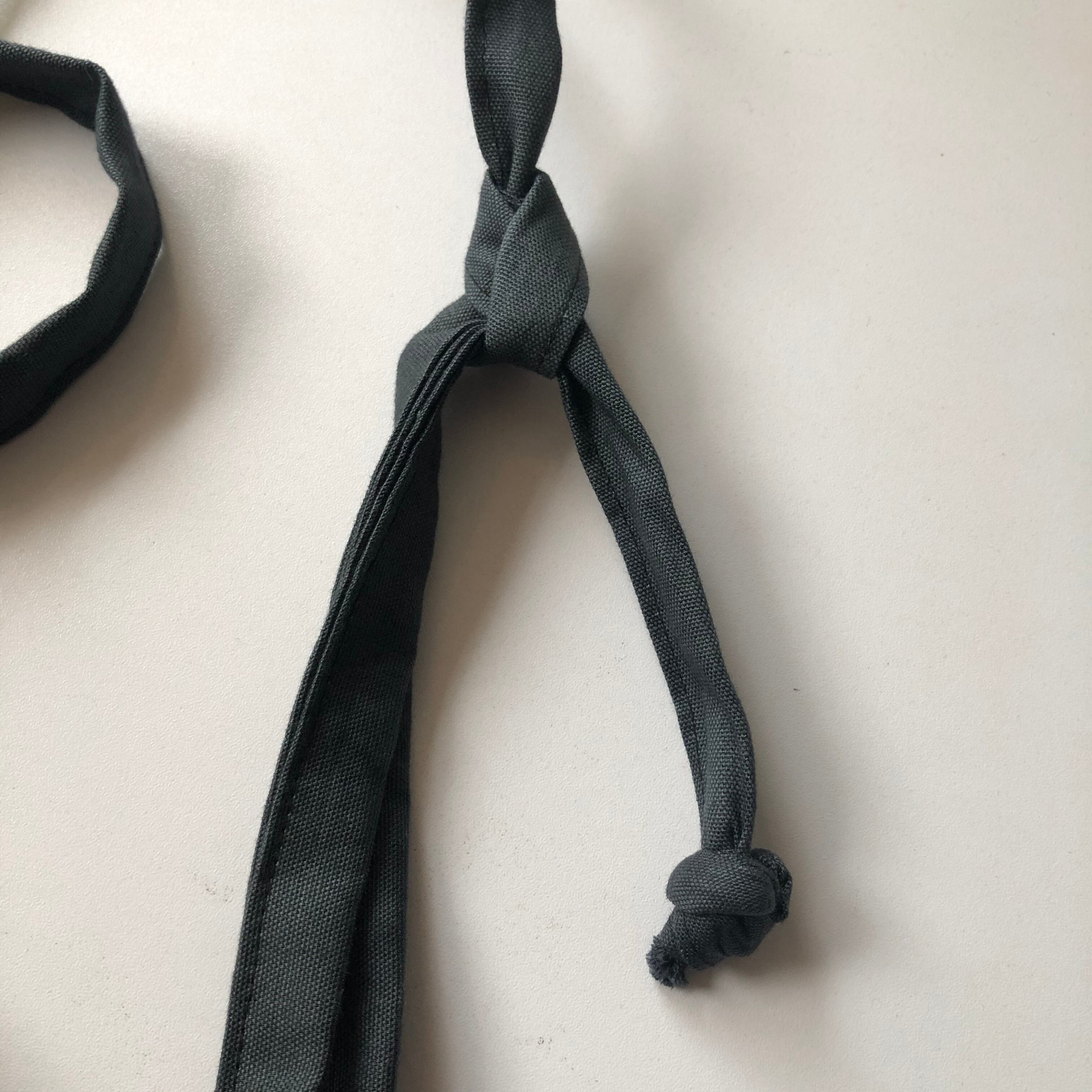 ストラップの結び目をずらしたり、ループに結びつけることによって長さ調整が可能です。