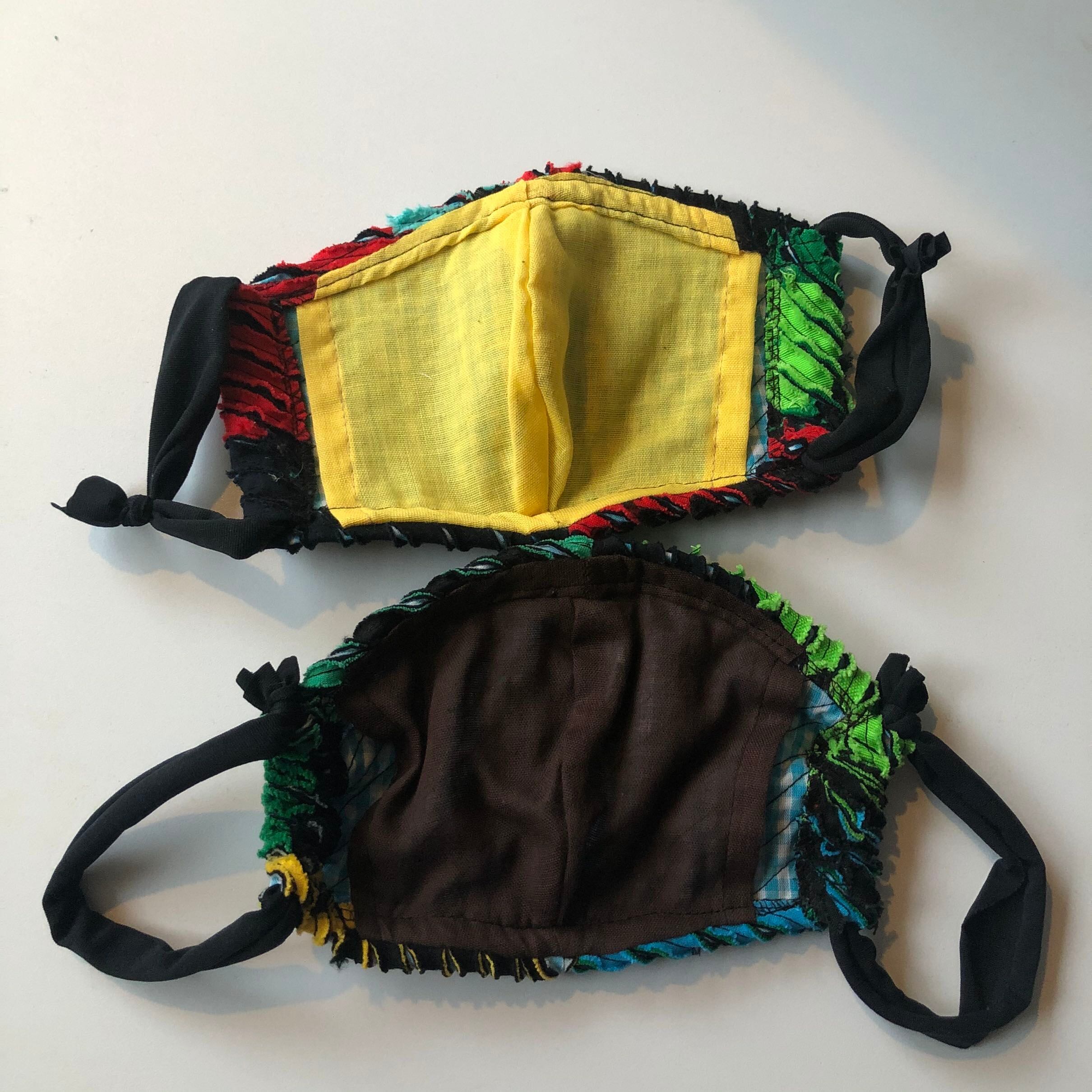 スラッシュキルトの技法で素材から作られた一点もののマスクです。