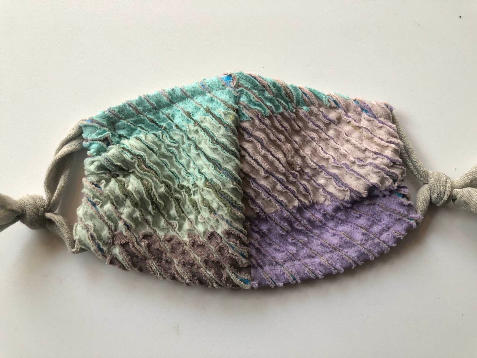 スラッシュキルトの技法で素材から作られた一点もののマスクです。
