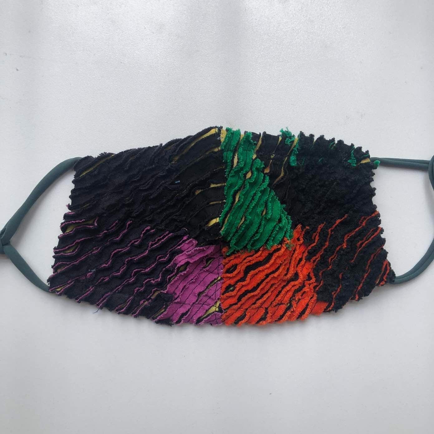 スラッシュキルトの技法で素材から作られた一点もののマスクです。