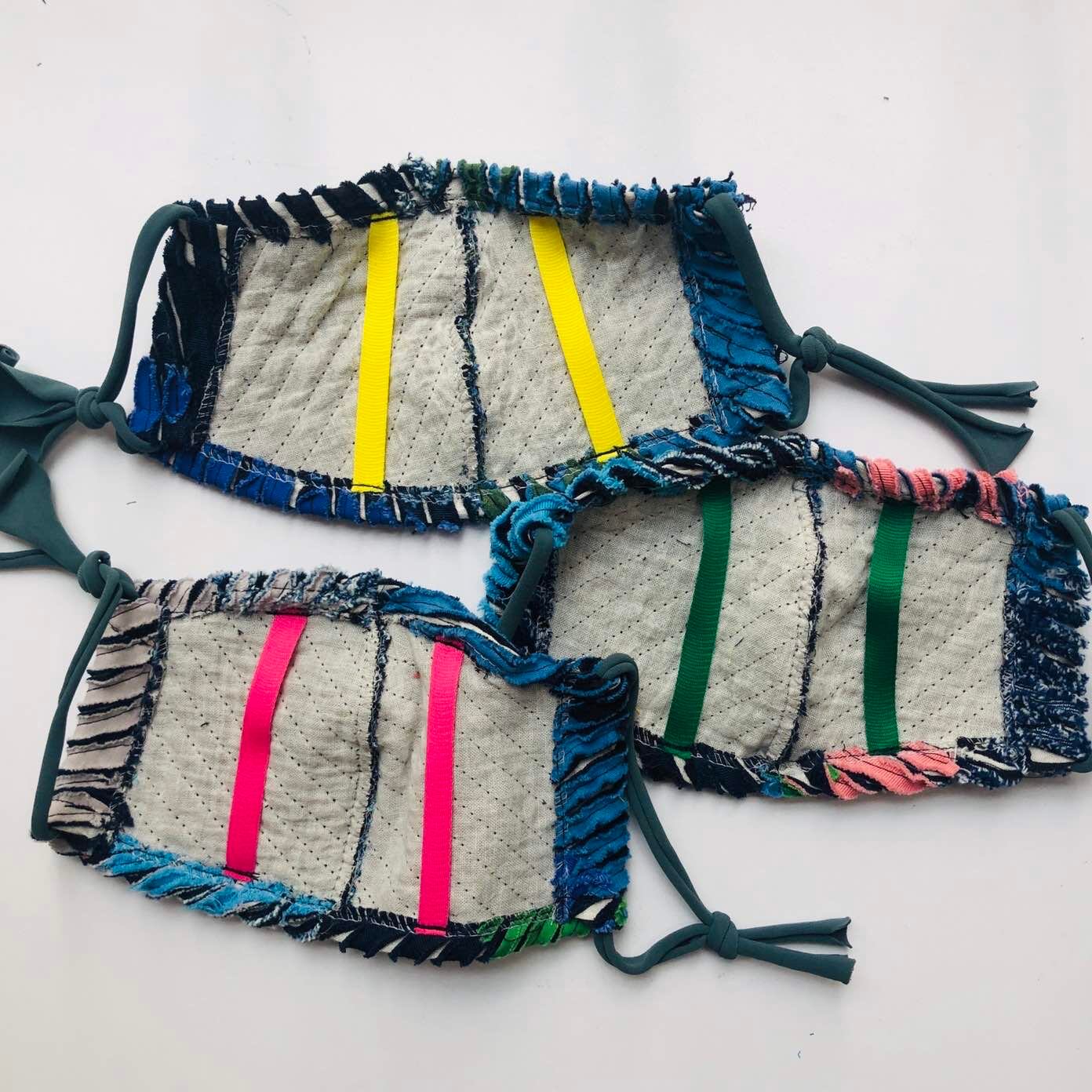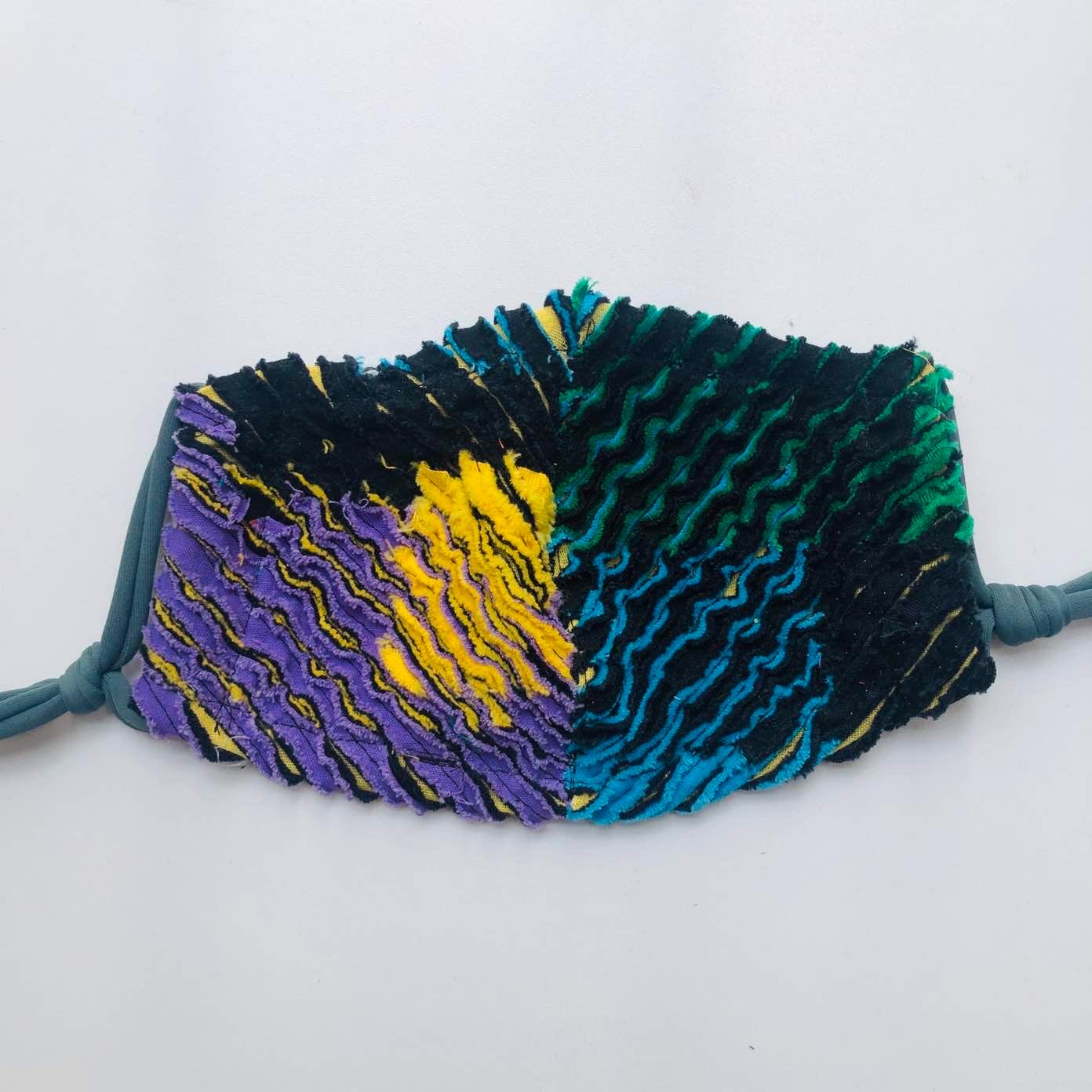 スラッシュキルトの技法で素材から作られた一点もののマスクです。