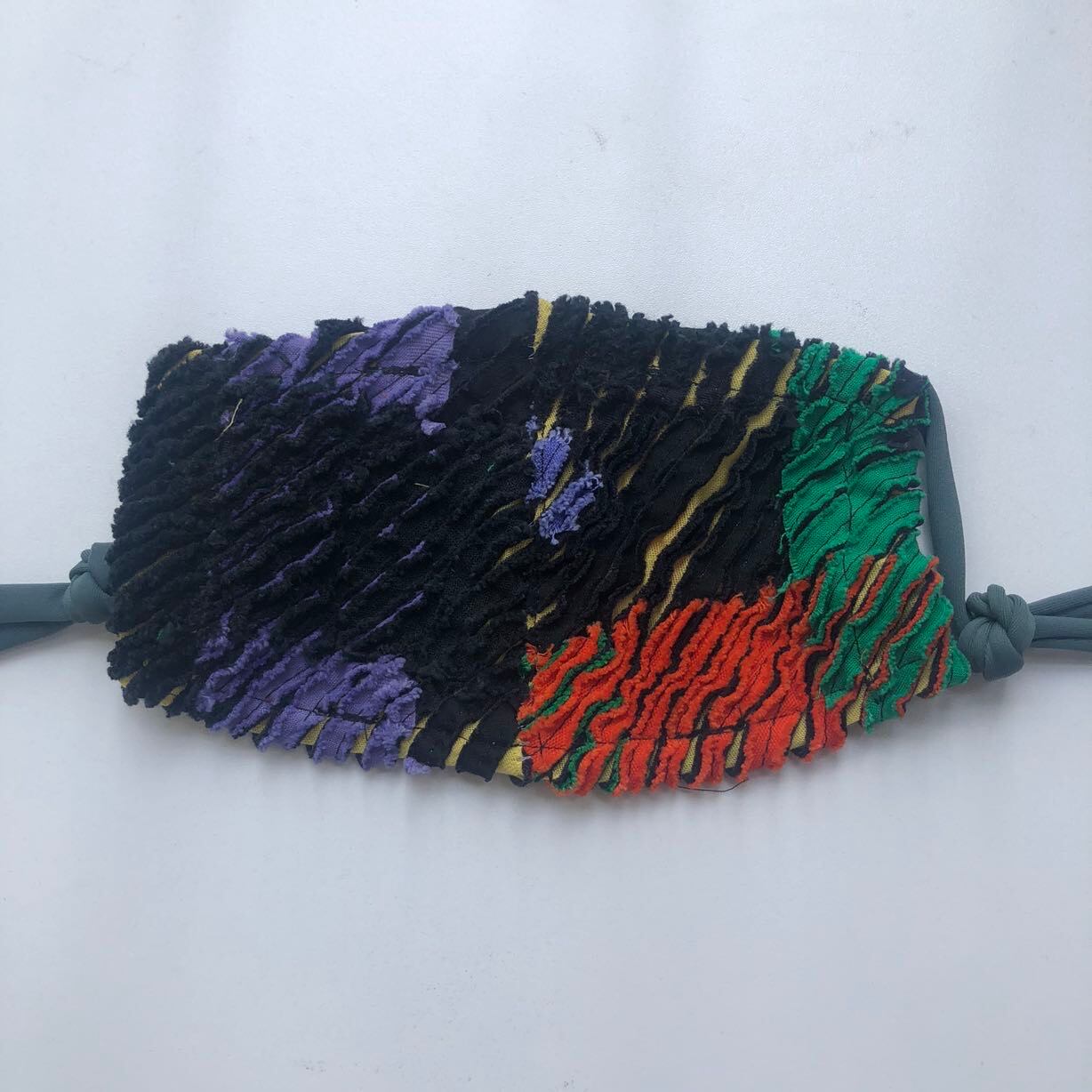 スラッシュキルトの技法で素材から作られた一点もののマスクです。
