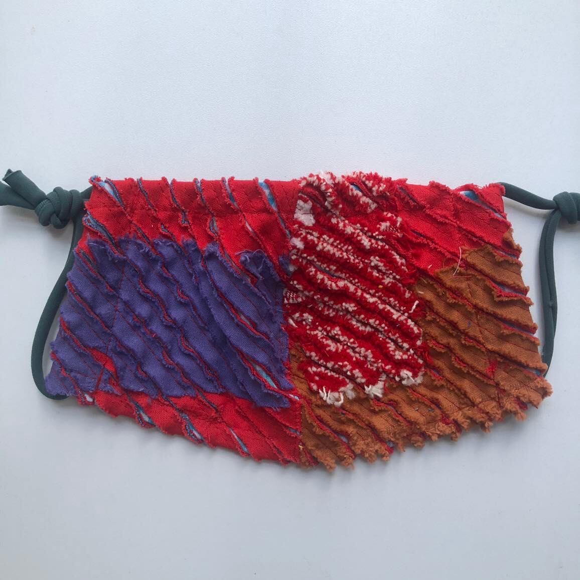 "スラッシュキルトの技法で素材から作られた一点もののマスクです。