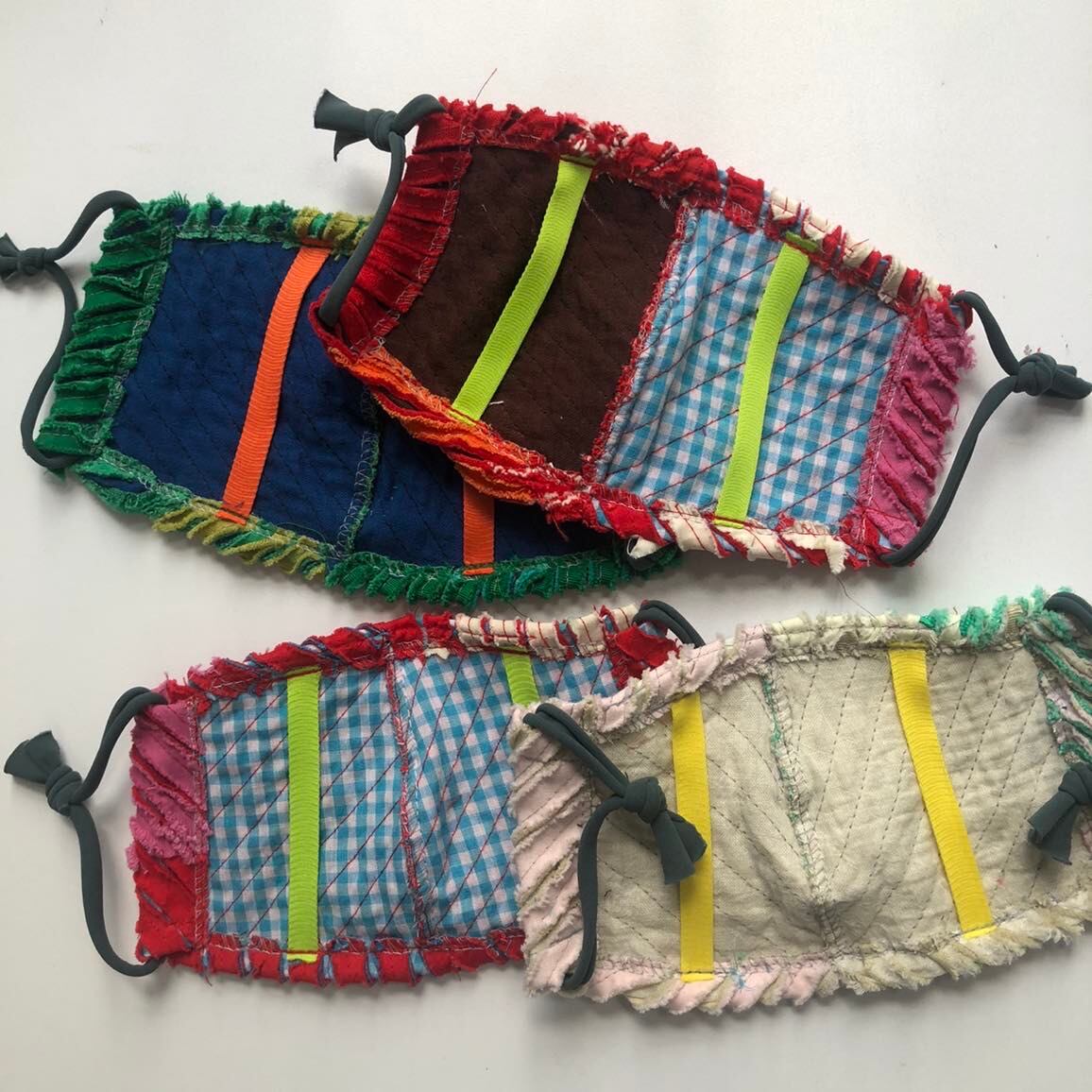 "スラッシュキルトの技法で素材から作られた一点もののマスクです。