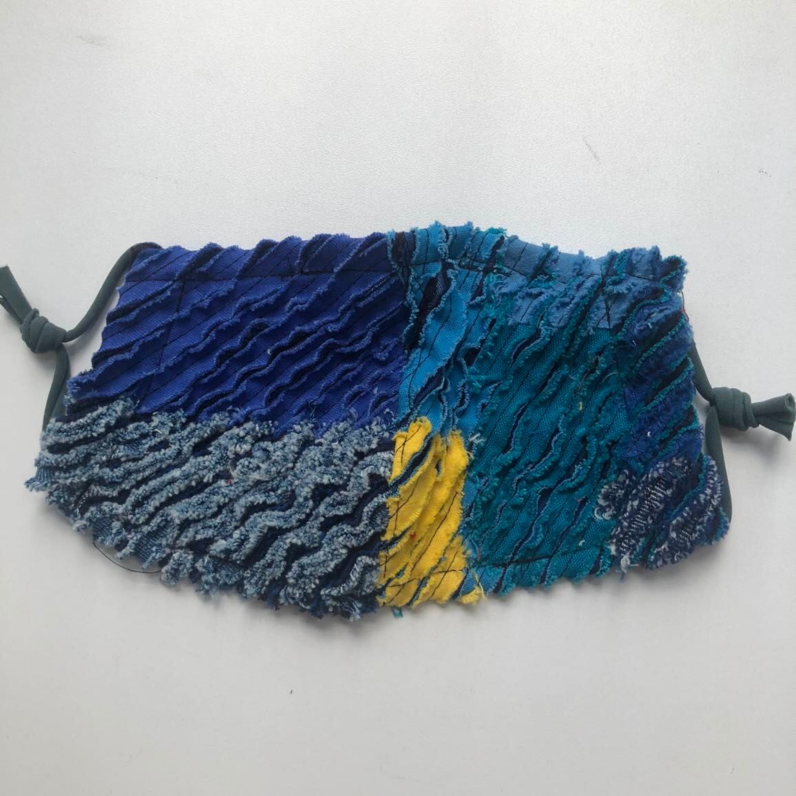 "スラッシュキルトの技法で素材から作られた一点もののマスクです。
