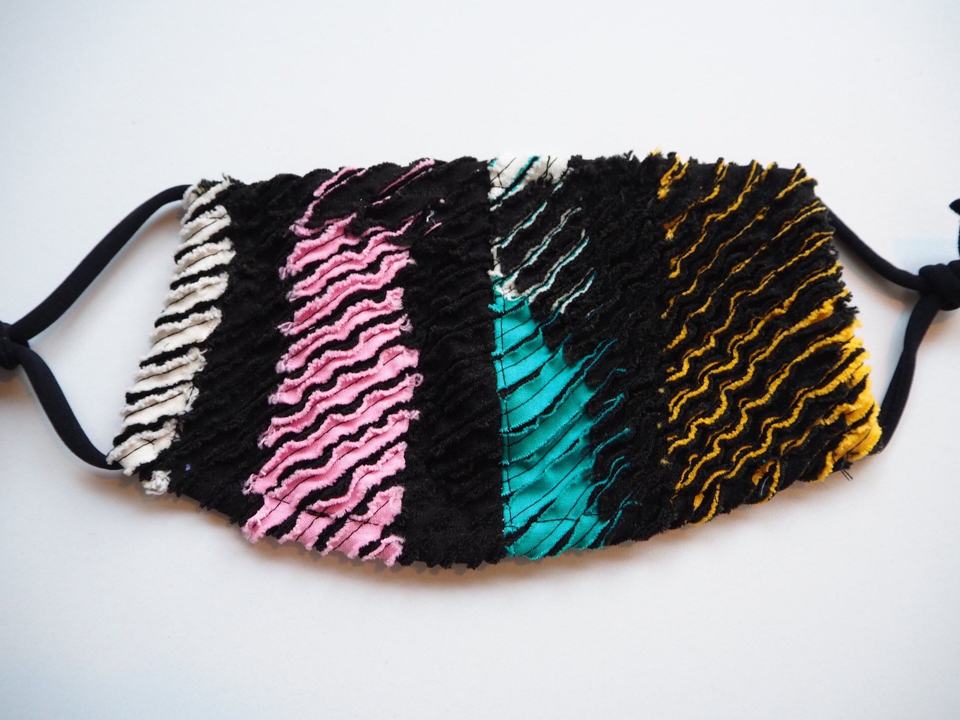 スラッシュキルトの技法で素材から作られた一点もののマスクです。