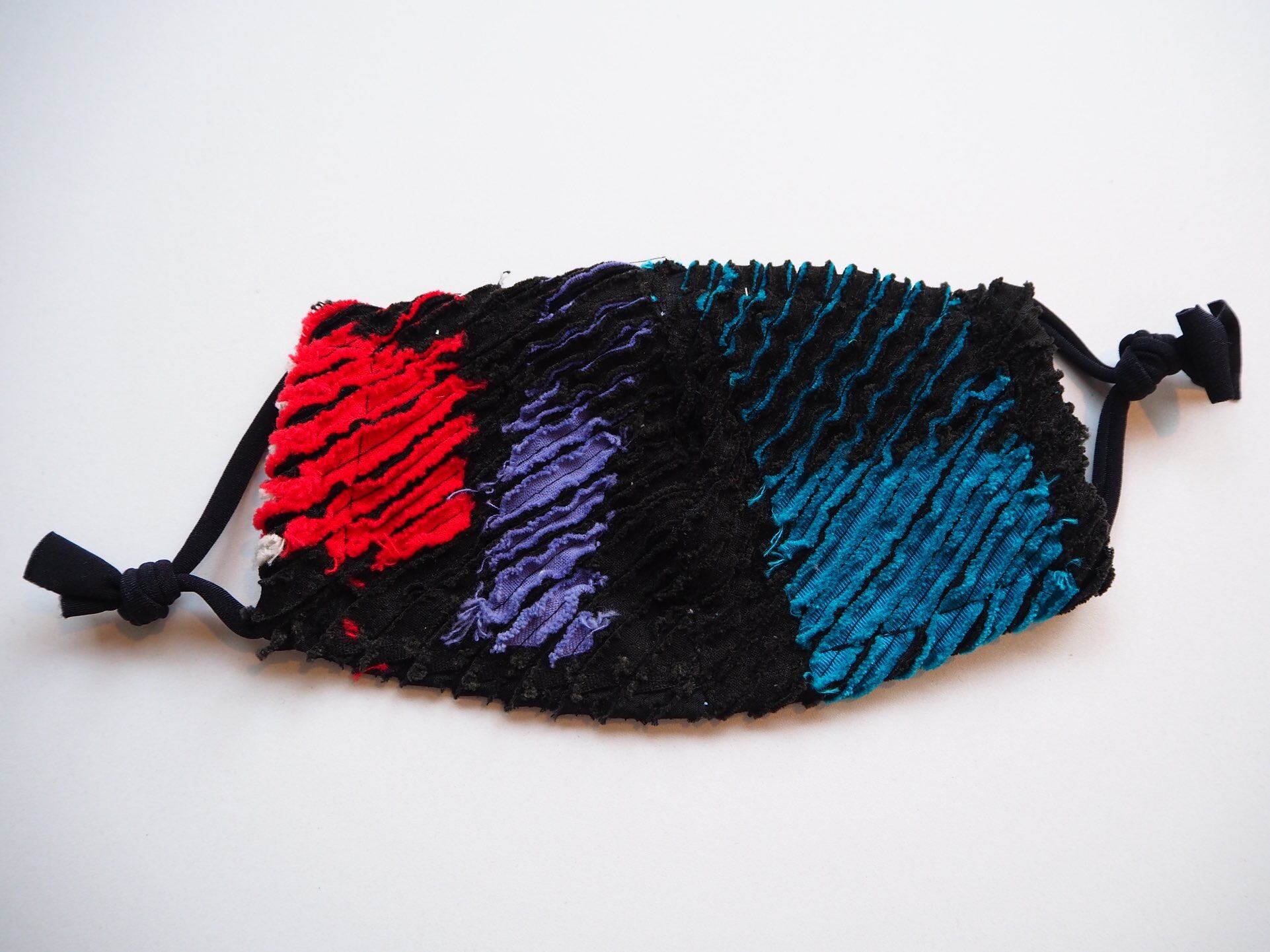 スラッシュキルトの技法で素材から作られた一点もののマスクです。