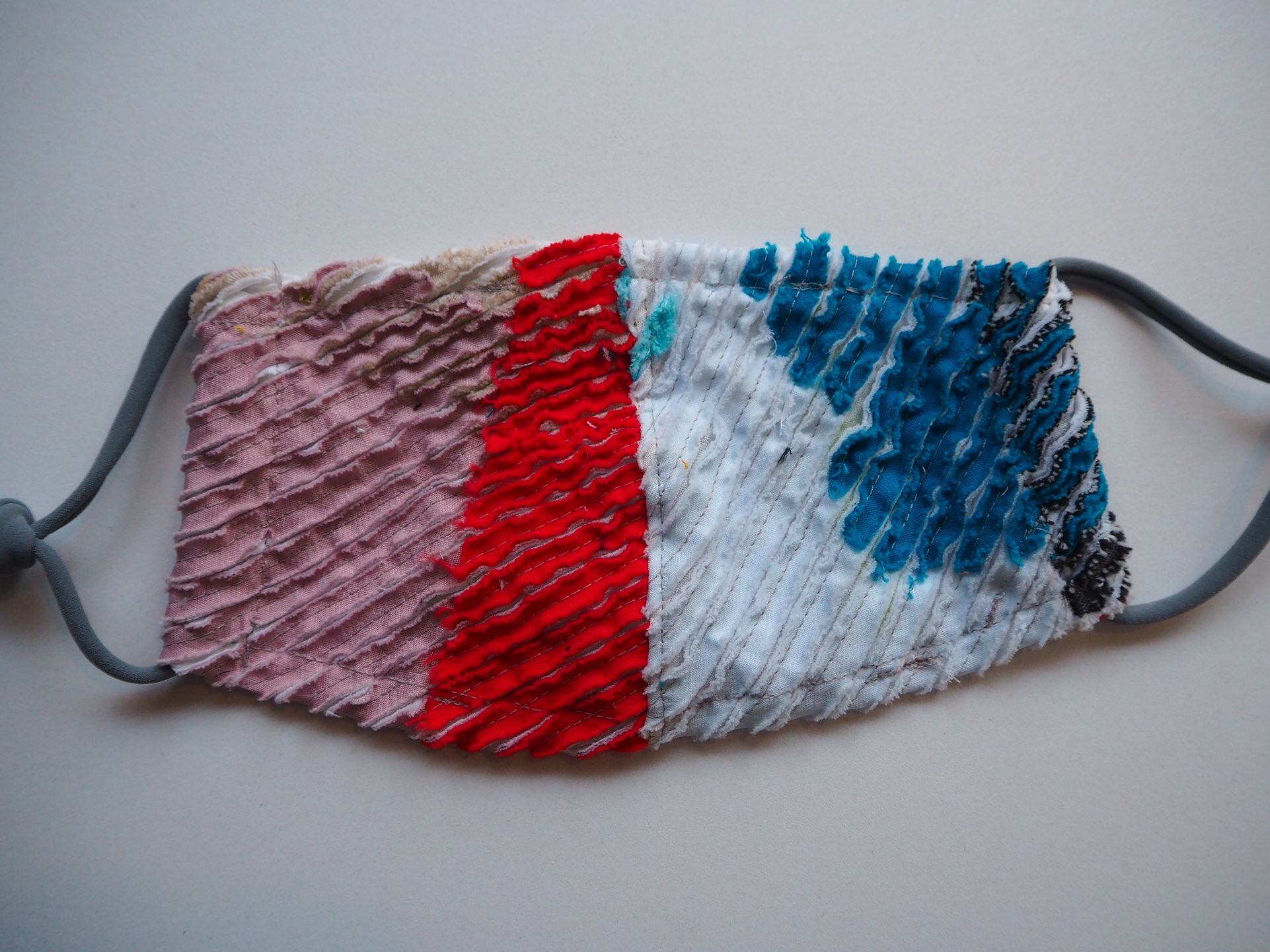 スラッシュキルトの技法で素材から作られた一点もののマスクです。