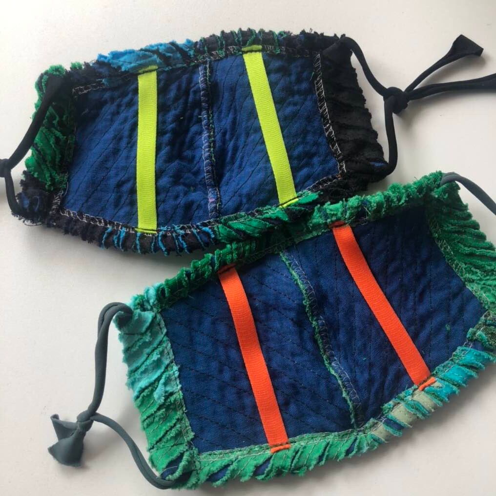 スラッシュキルトの技法で素材から作られた一点もののマスクです。