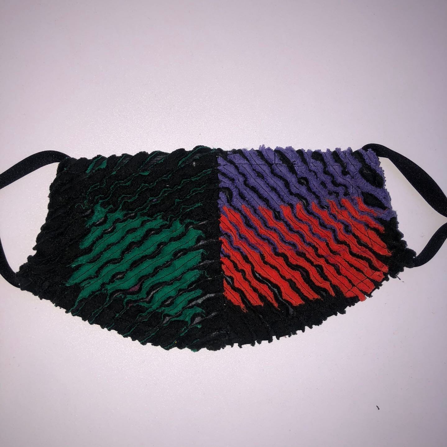 "スラッシュキルトの技法で素材から作られた一点もののマスクです。
