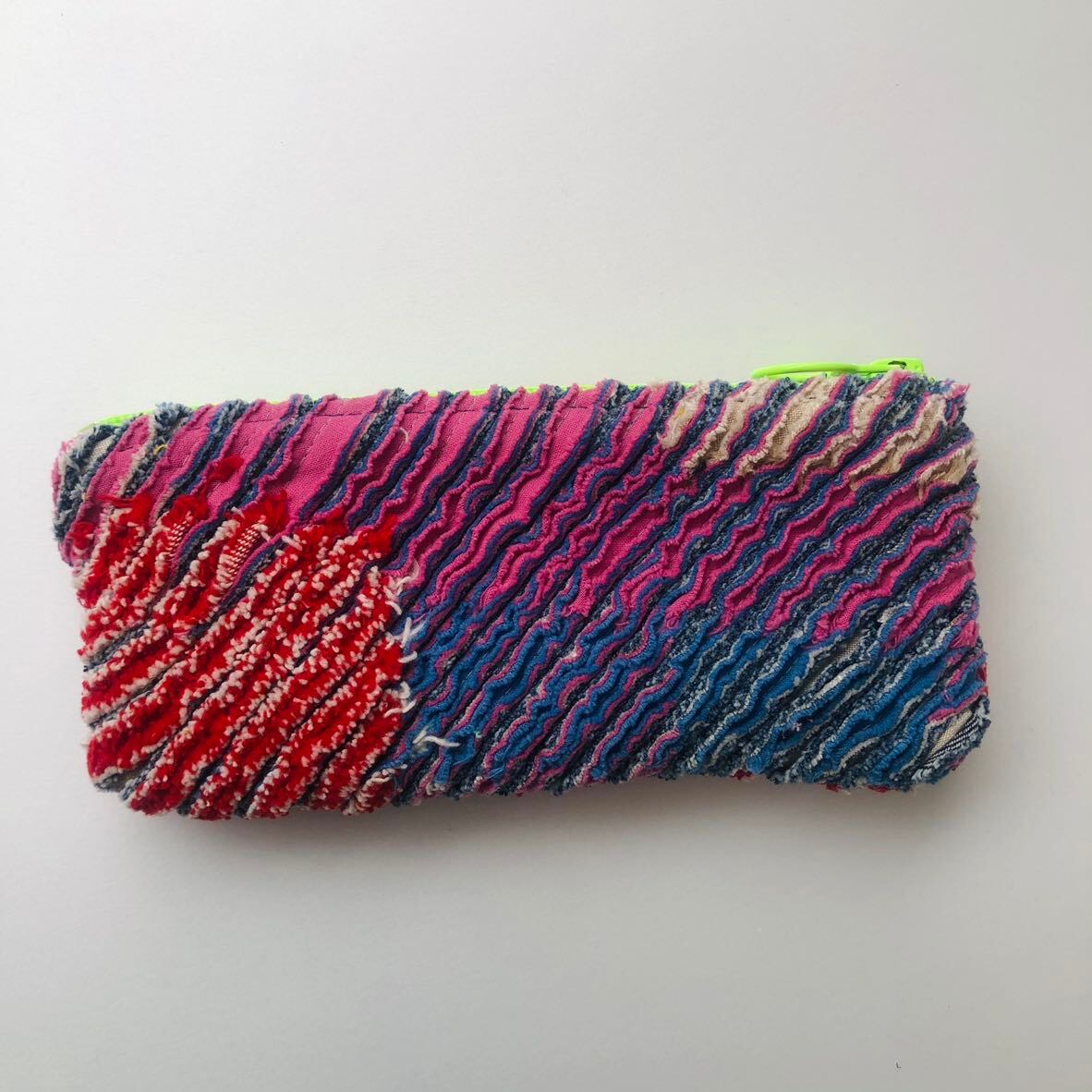 素材から世界に一つの、カラフルなスラッシュキルトのポーチ。