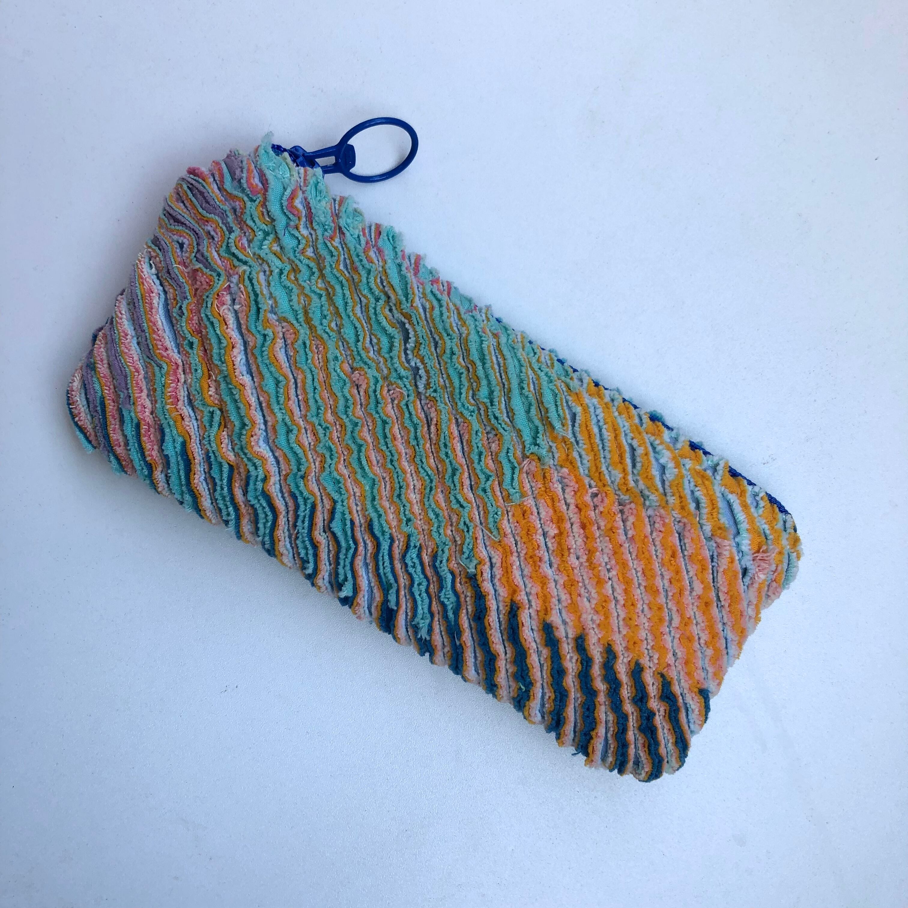 素材から世界に一つの、カラフルなスラッシュキルトのポーチ。