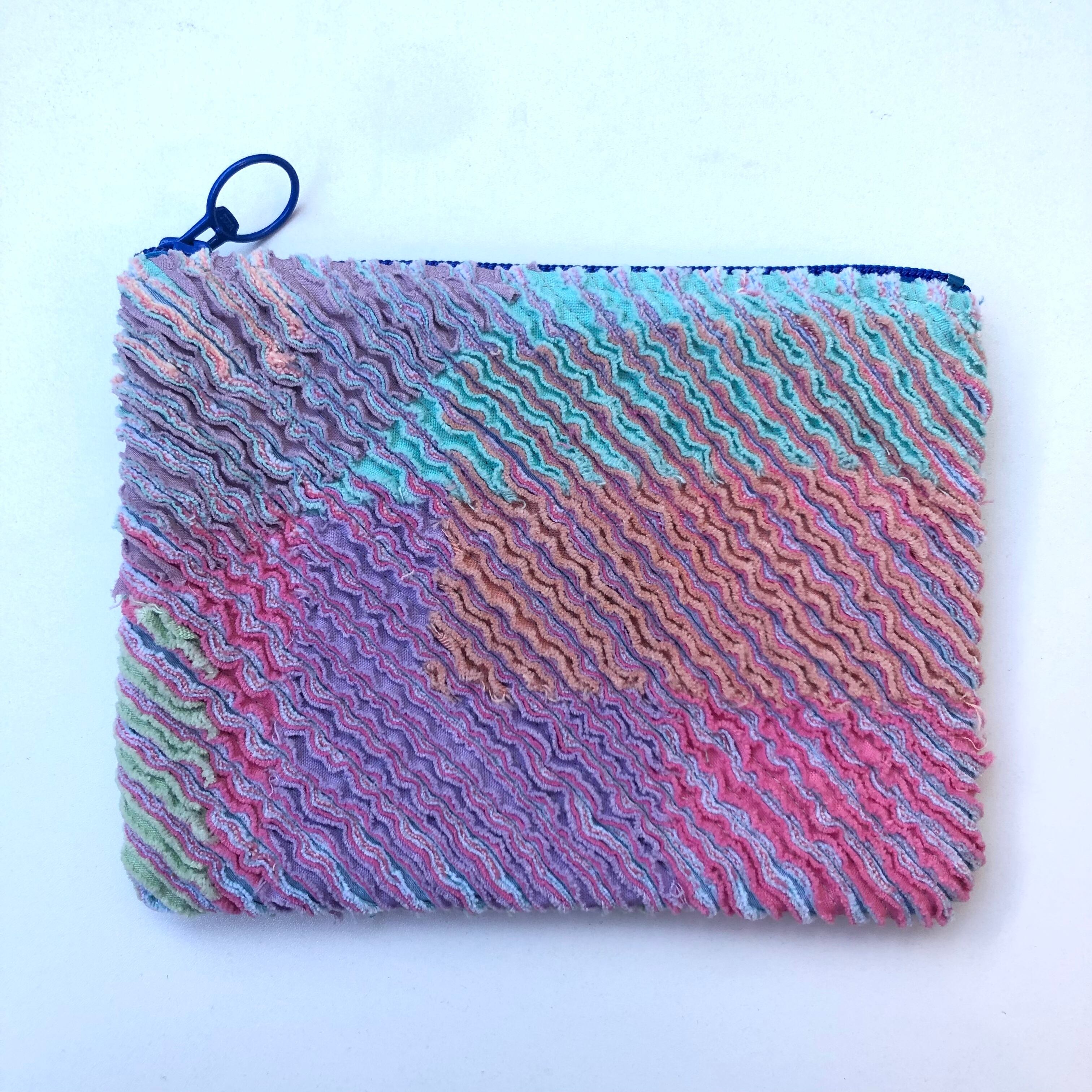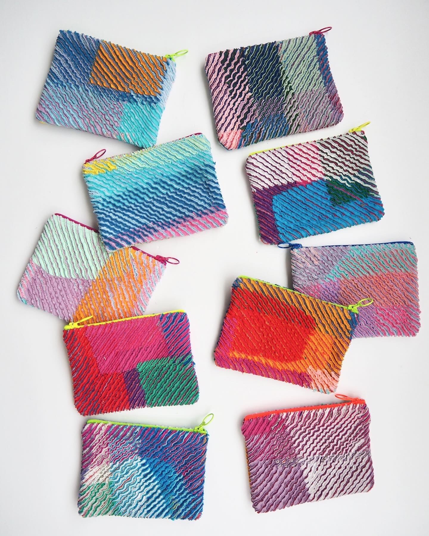 素材から世界に一つの、カラフルなスラッシュキルトのポーチ。