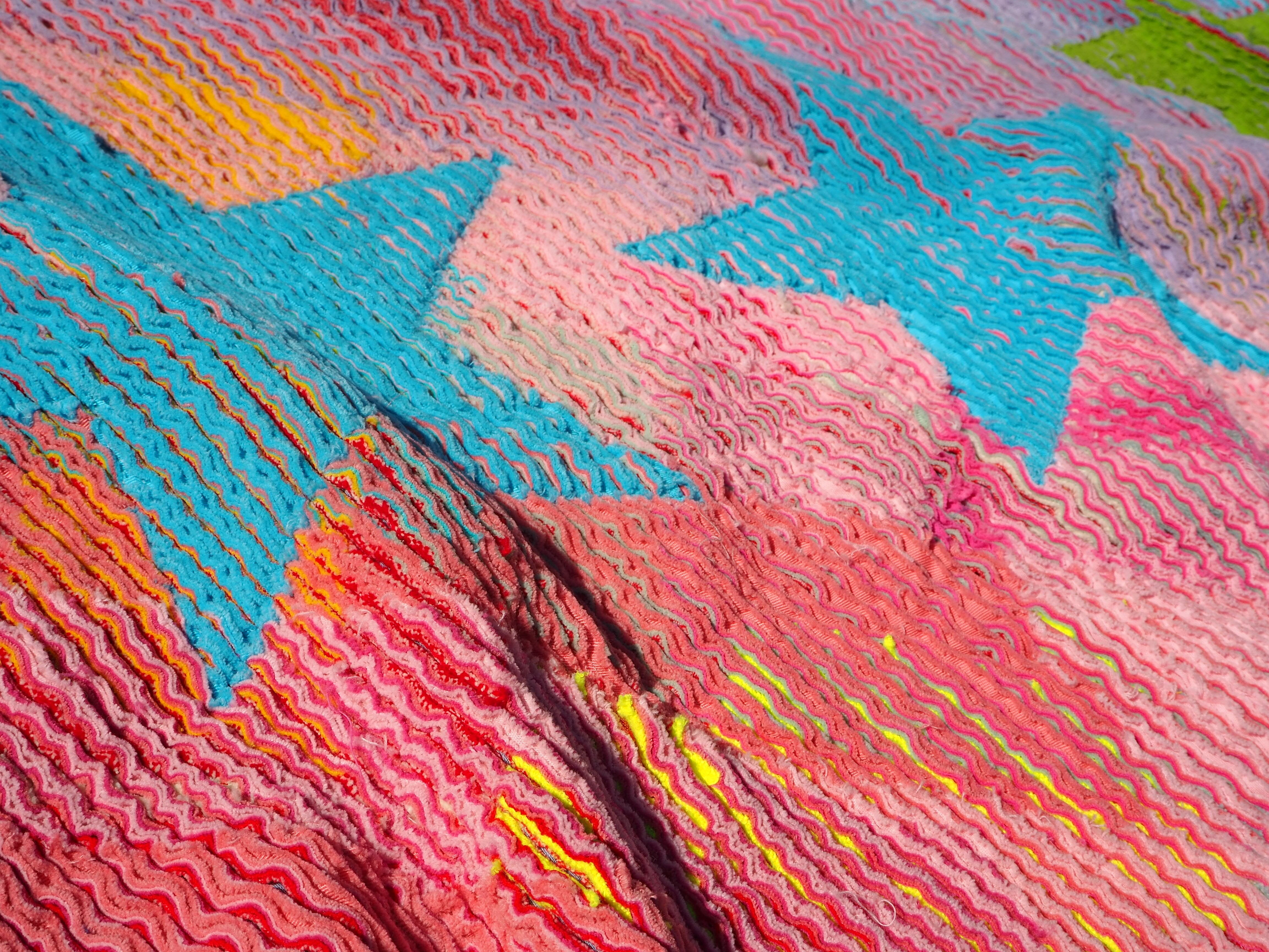 あえてキルトの端の始末をしていないデザインのため、ソファカバーやラグなど摩擦がかかる用途ではほつれる可能性があり不向きです。