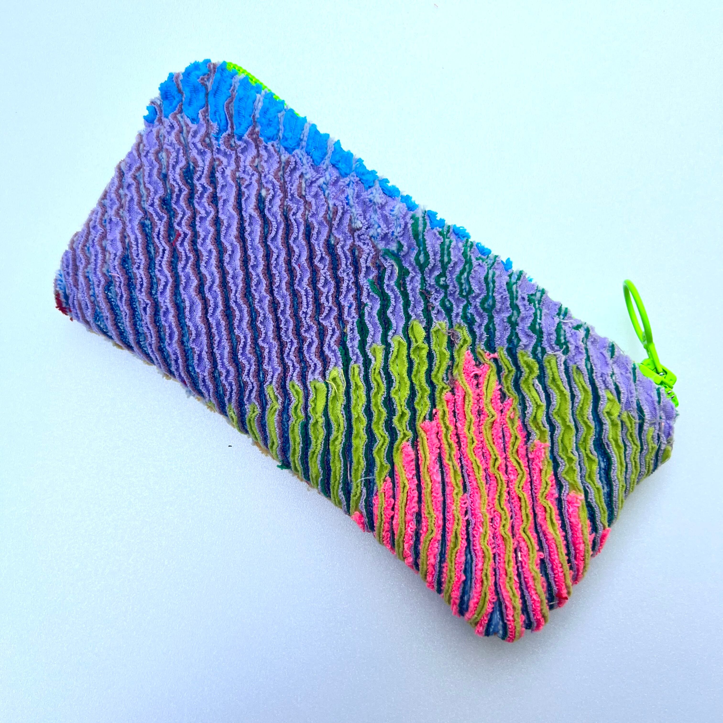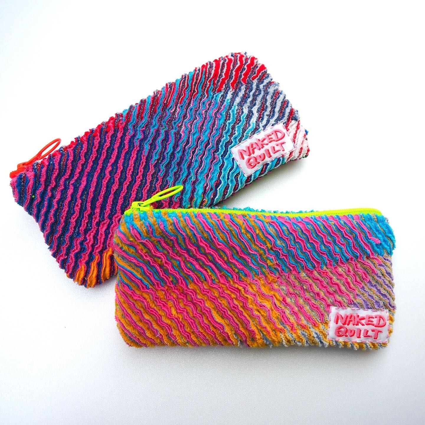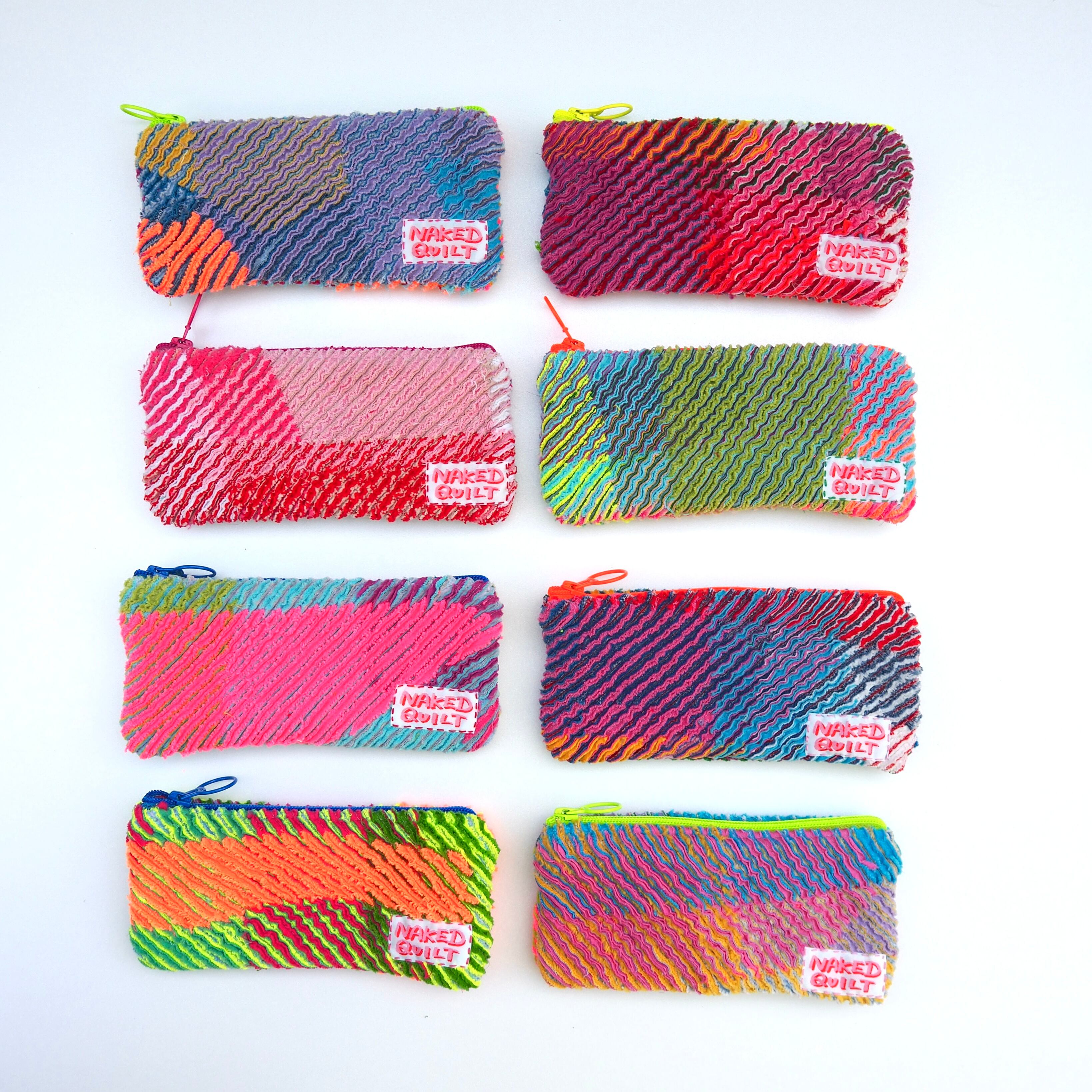 素材から世界に一つの、カラフルなスラッシュキルトのポーチ。