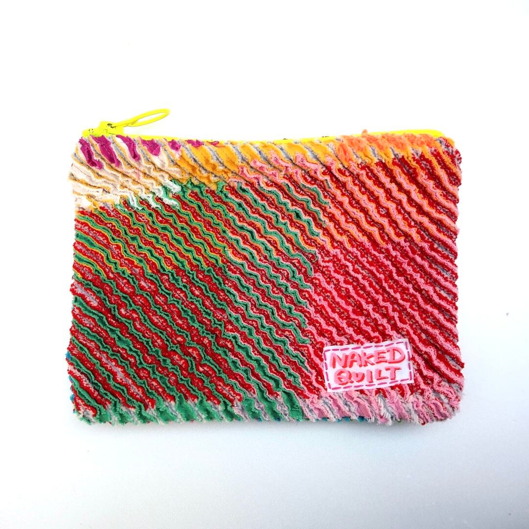 素材から世界に一つの、カラフルなスラッシュキルトのポーチ。