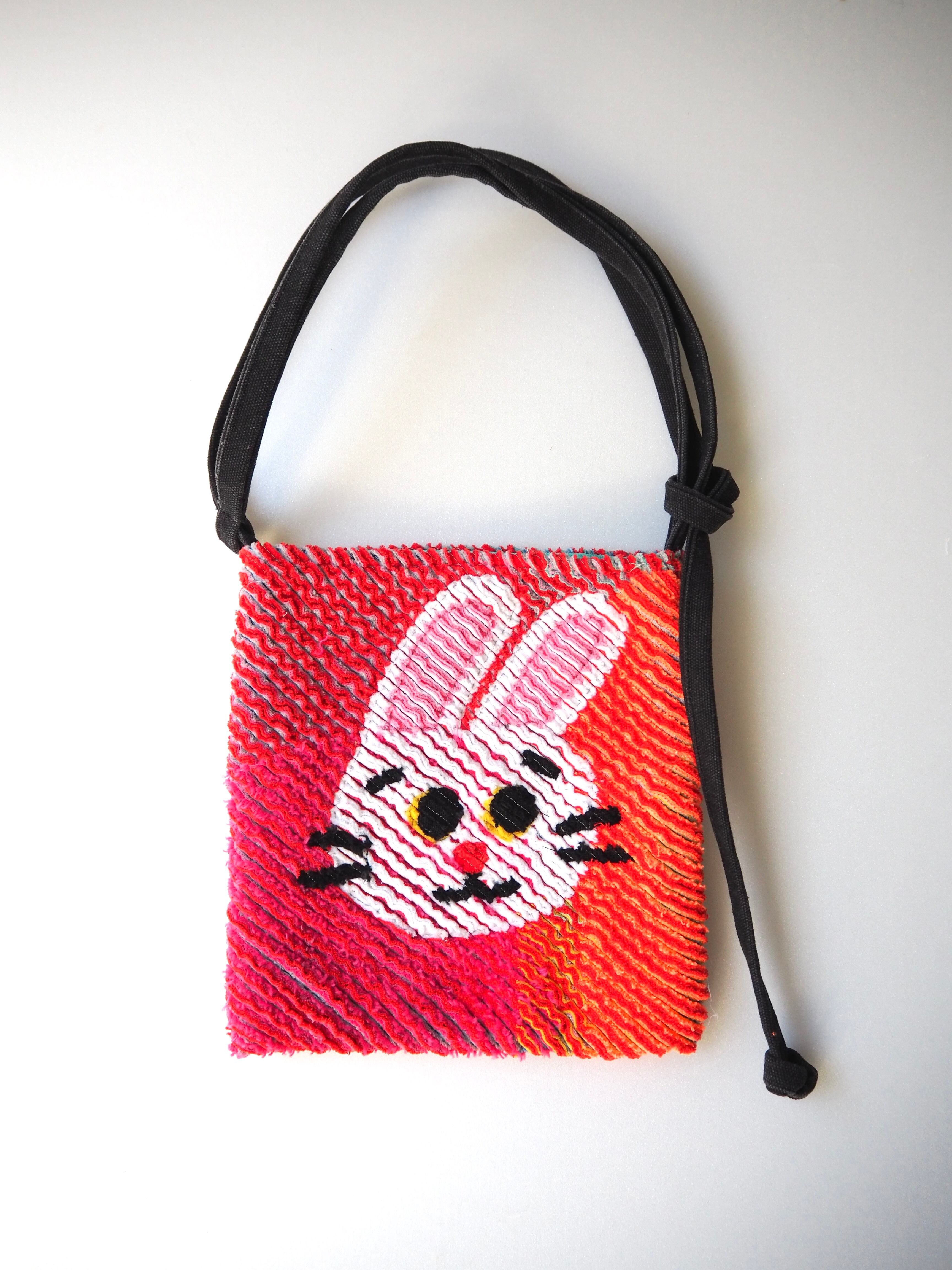 ミニスクエアサコッシュ◯子うさぎしんぱいレッド