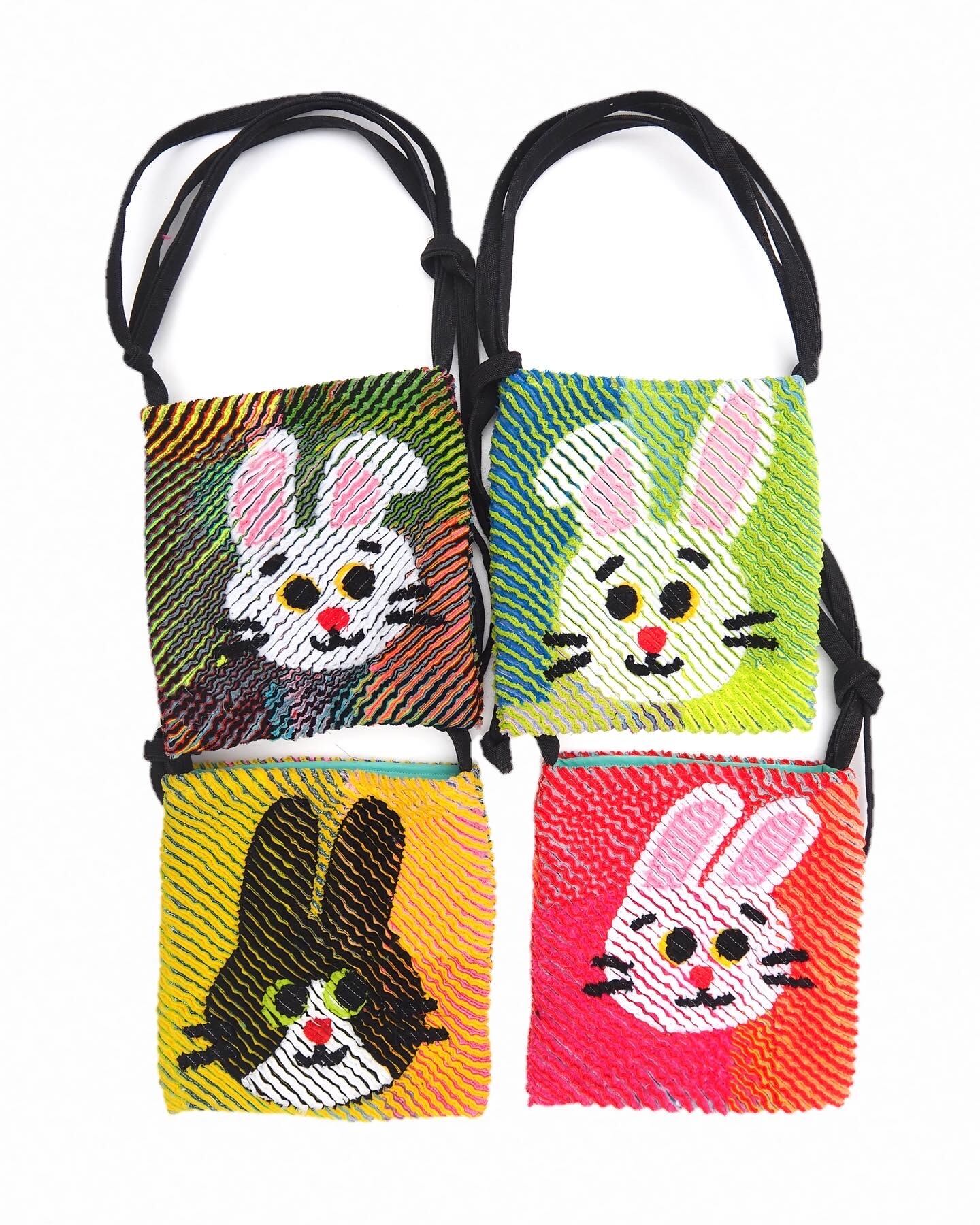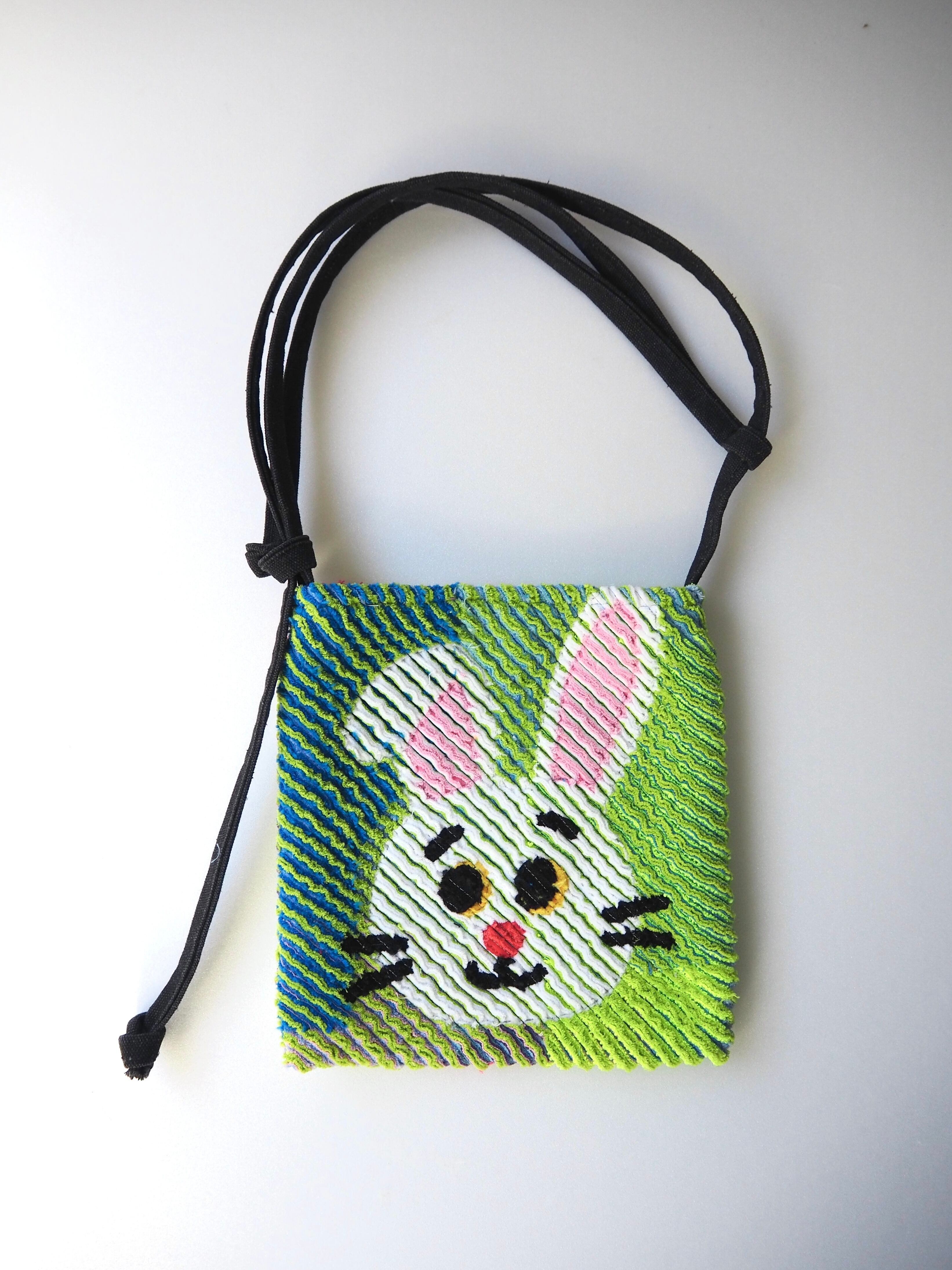ミニスクエアサコッシュ◯うさぎしんぱいライトグリーン