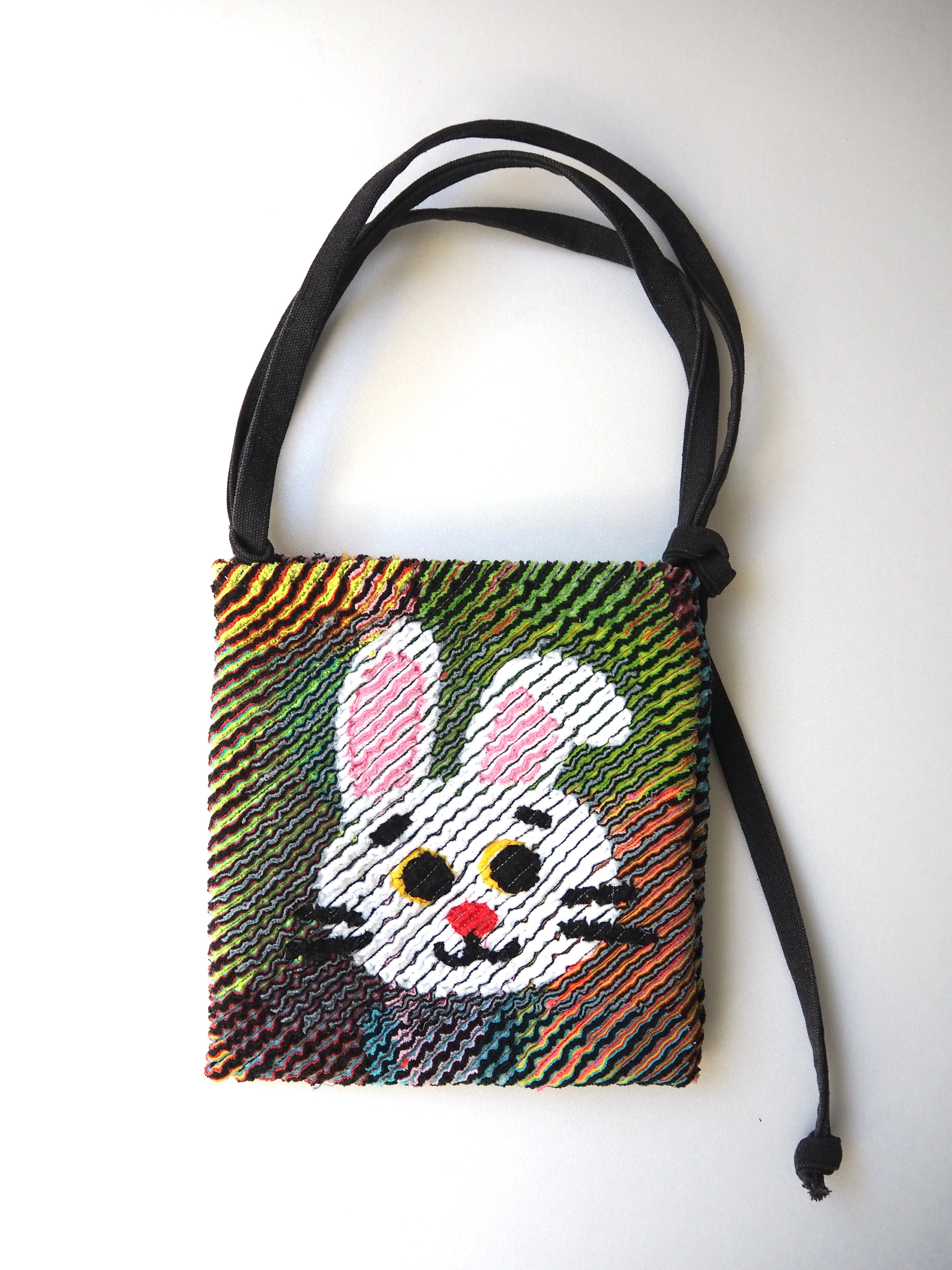ミニスクエアサコッシュ◯うさぎしんぱいブラック