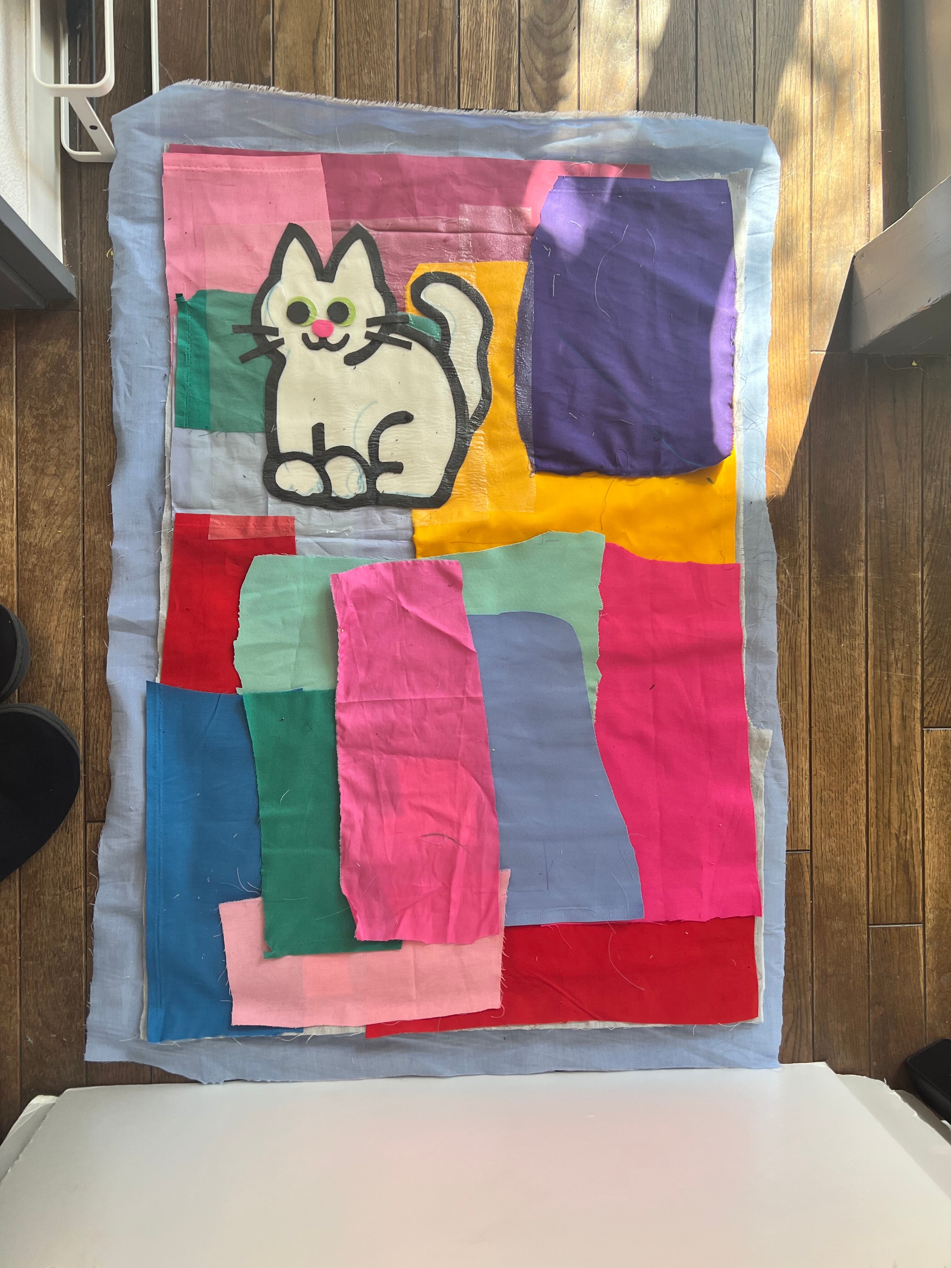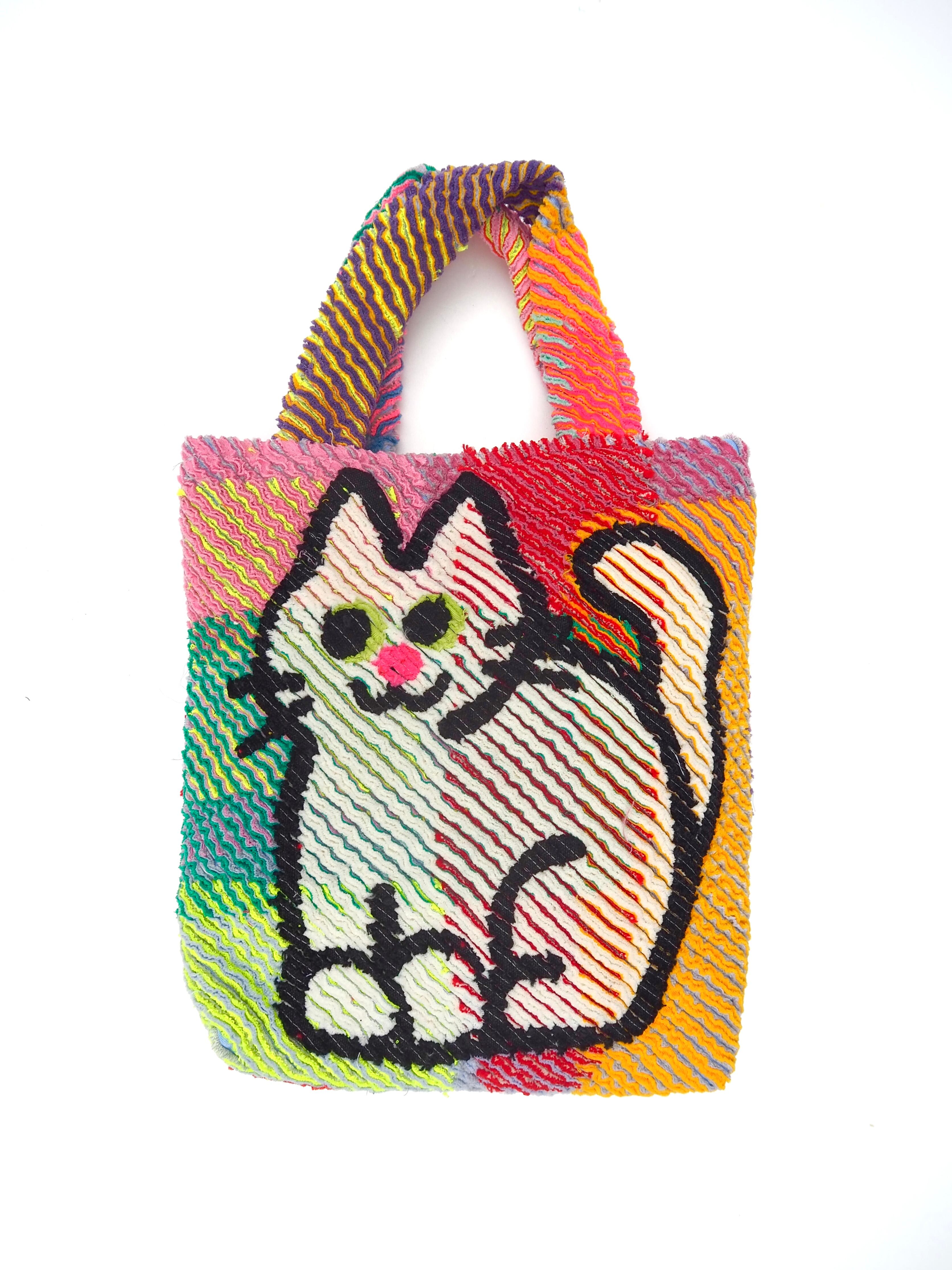 たてながトートバッグ◯後をつける白いこねこ