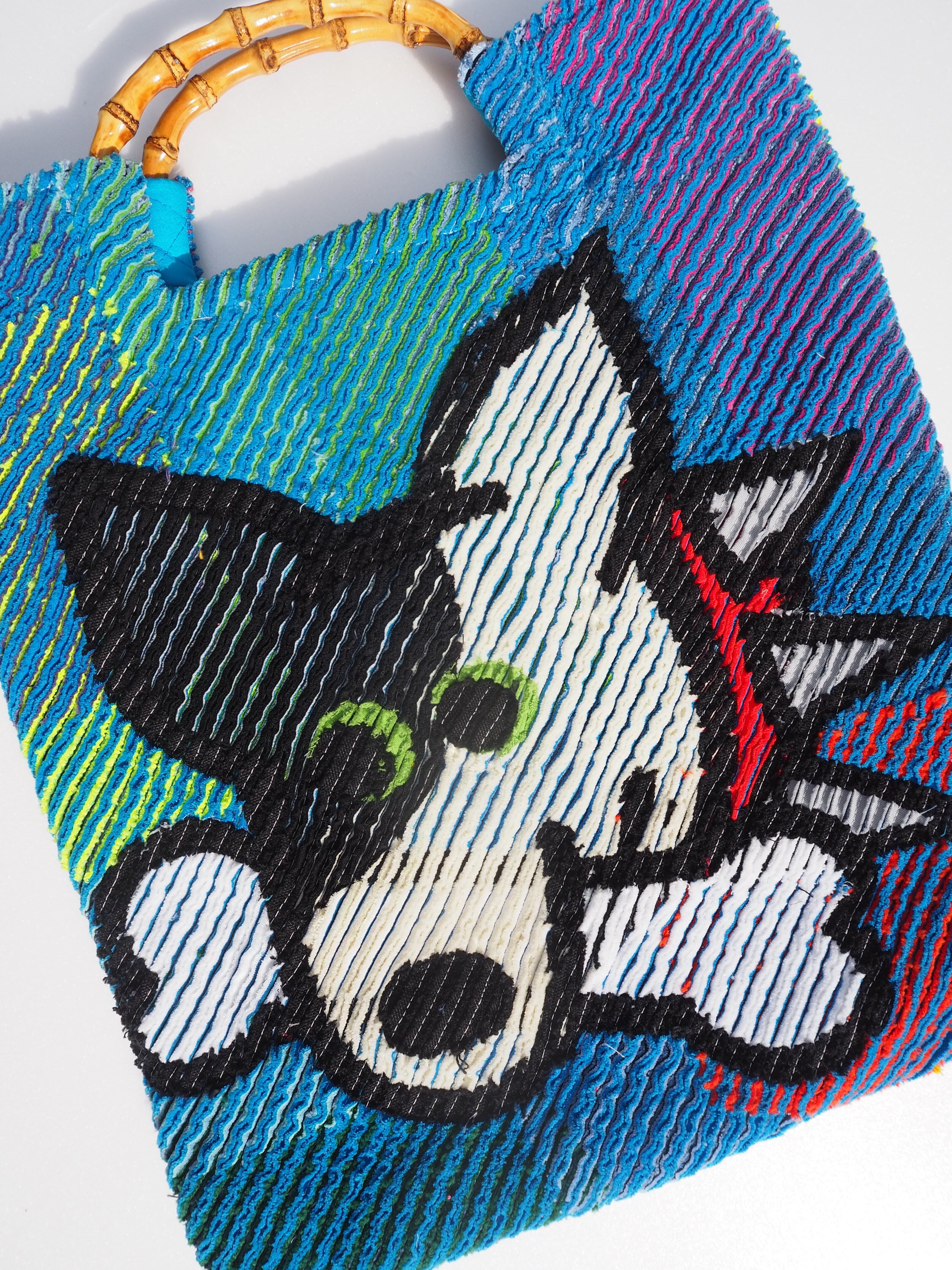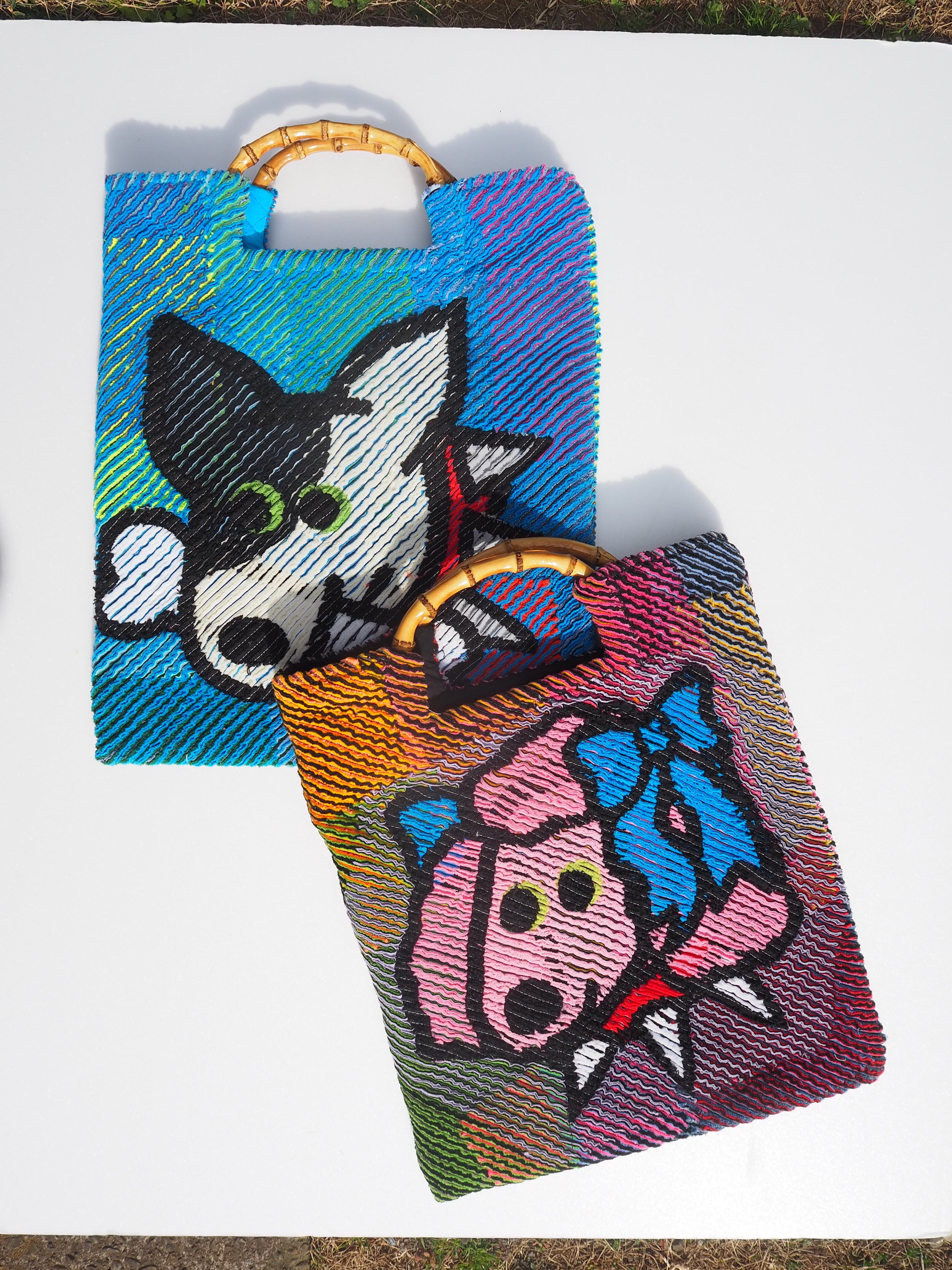 絵画を持ち歩くような形の、フラットなバンブーバッグです。