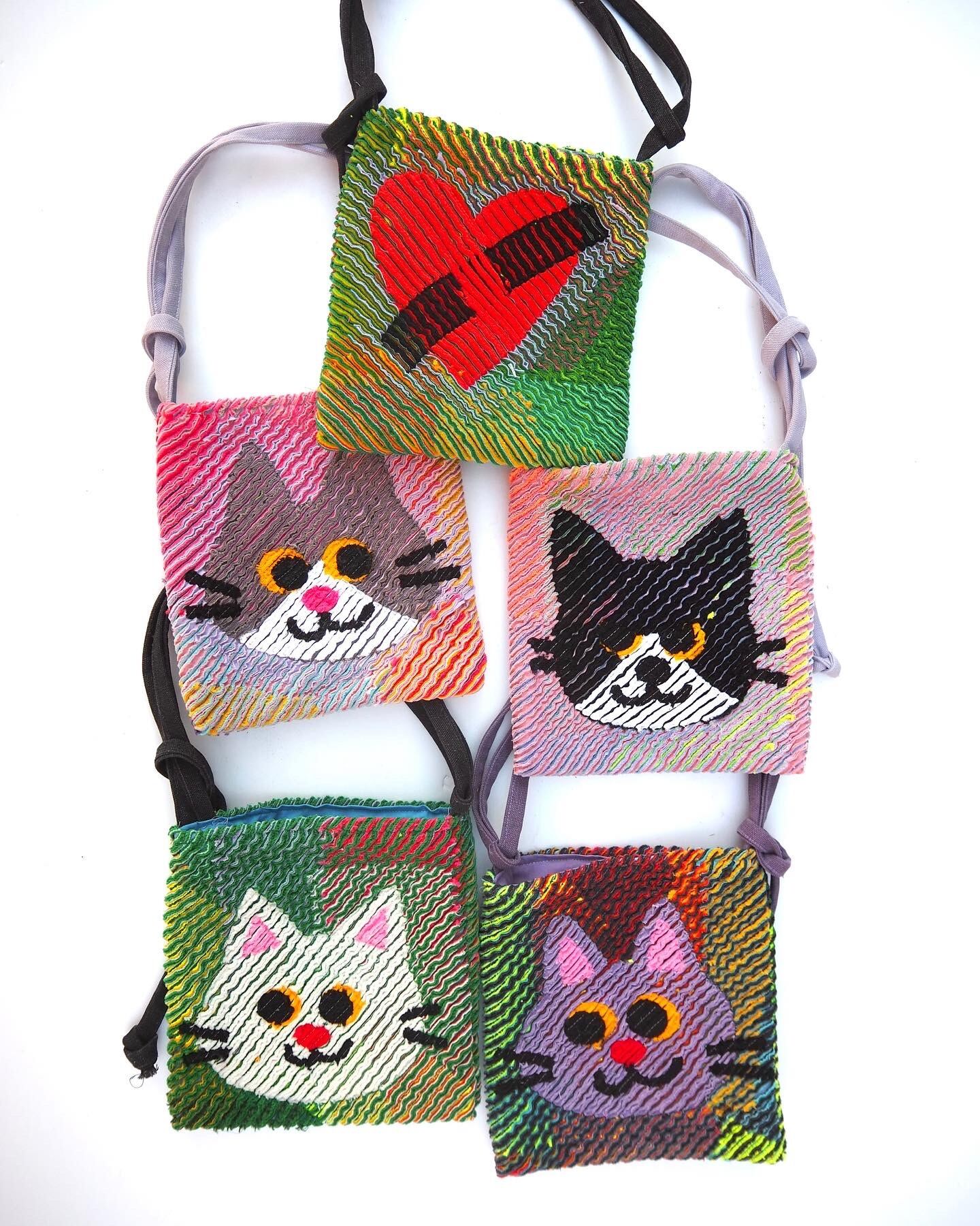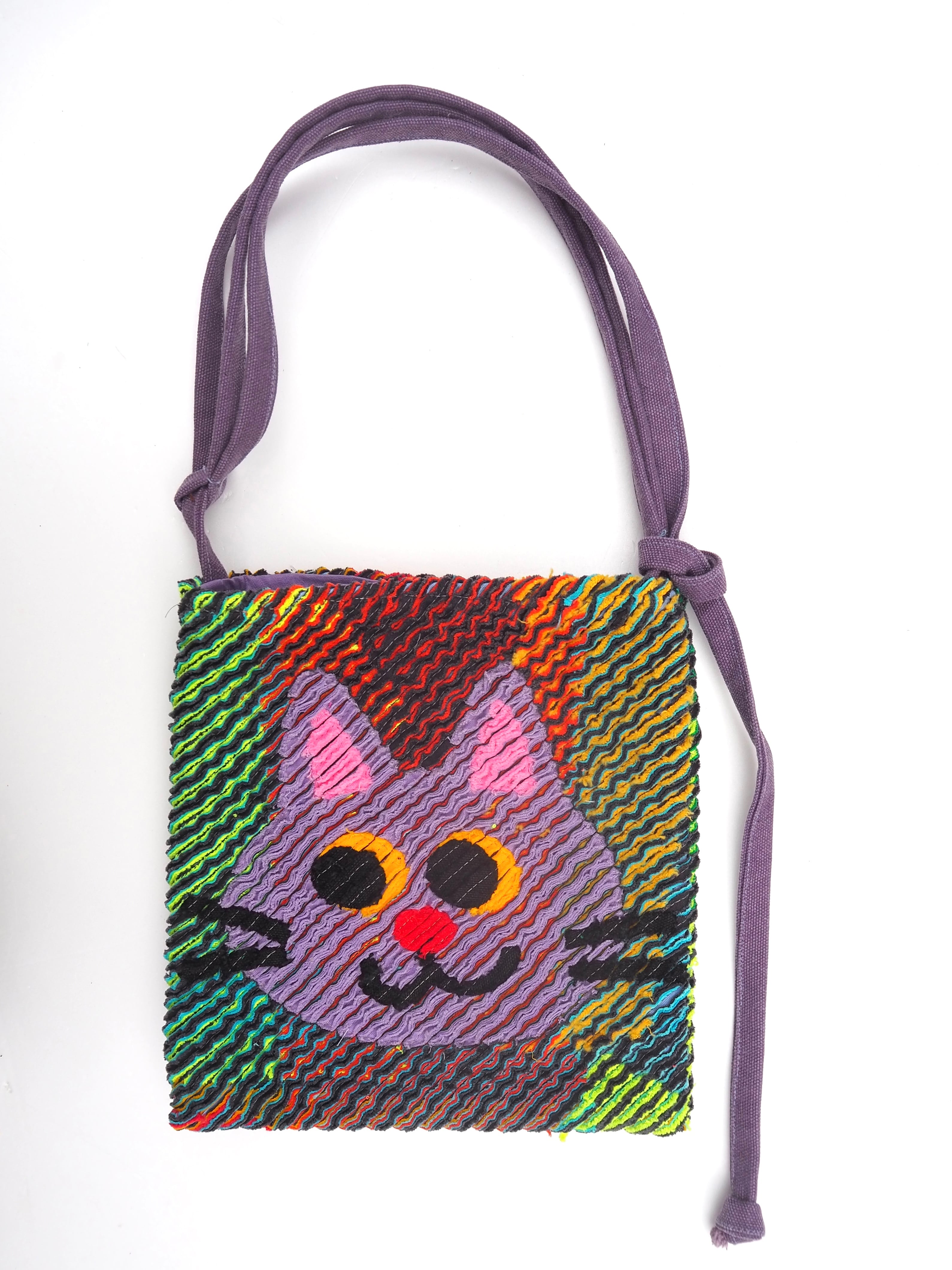 ミニスクエアサコッシュ◯パープルキャットスマイルブラック