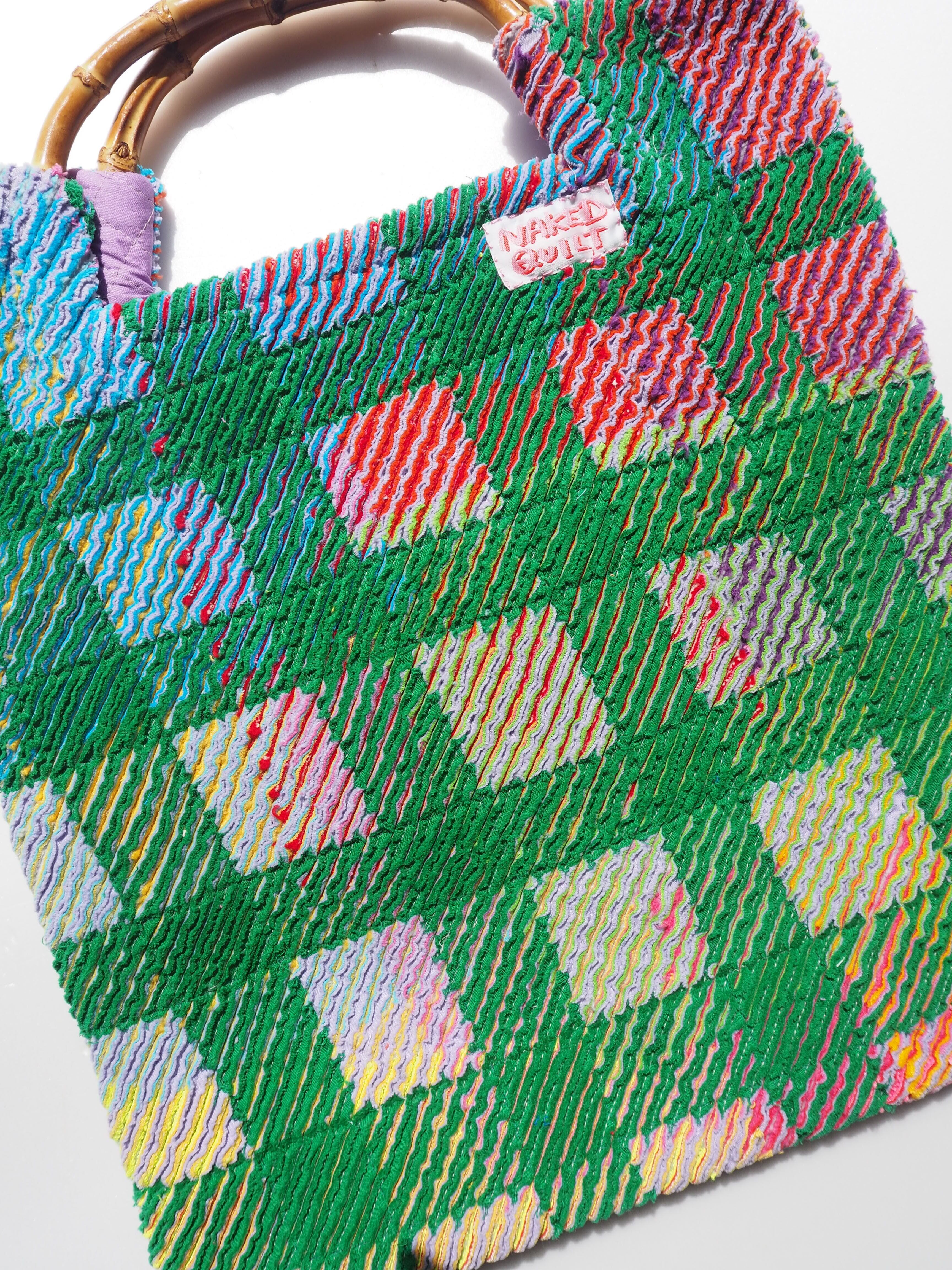 絵画を持ち歩くような形の、フラットなバンブーバッグです。