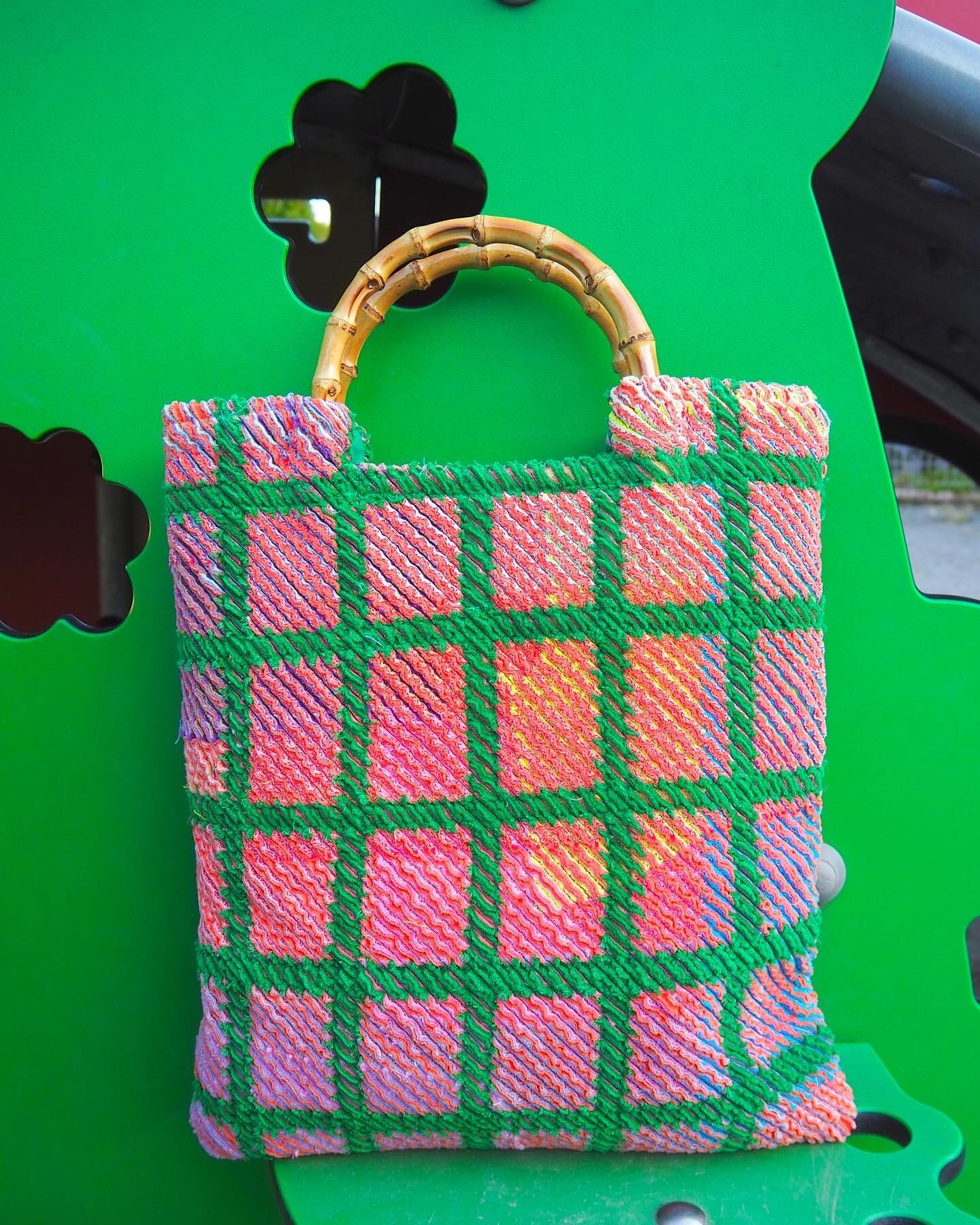 絵画を持ち歩くような形の、フラットなバンブーバッグです。