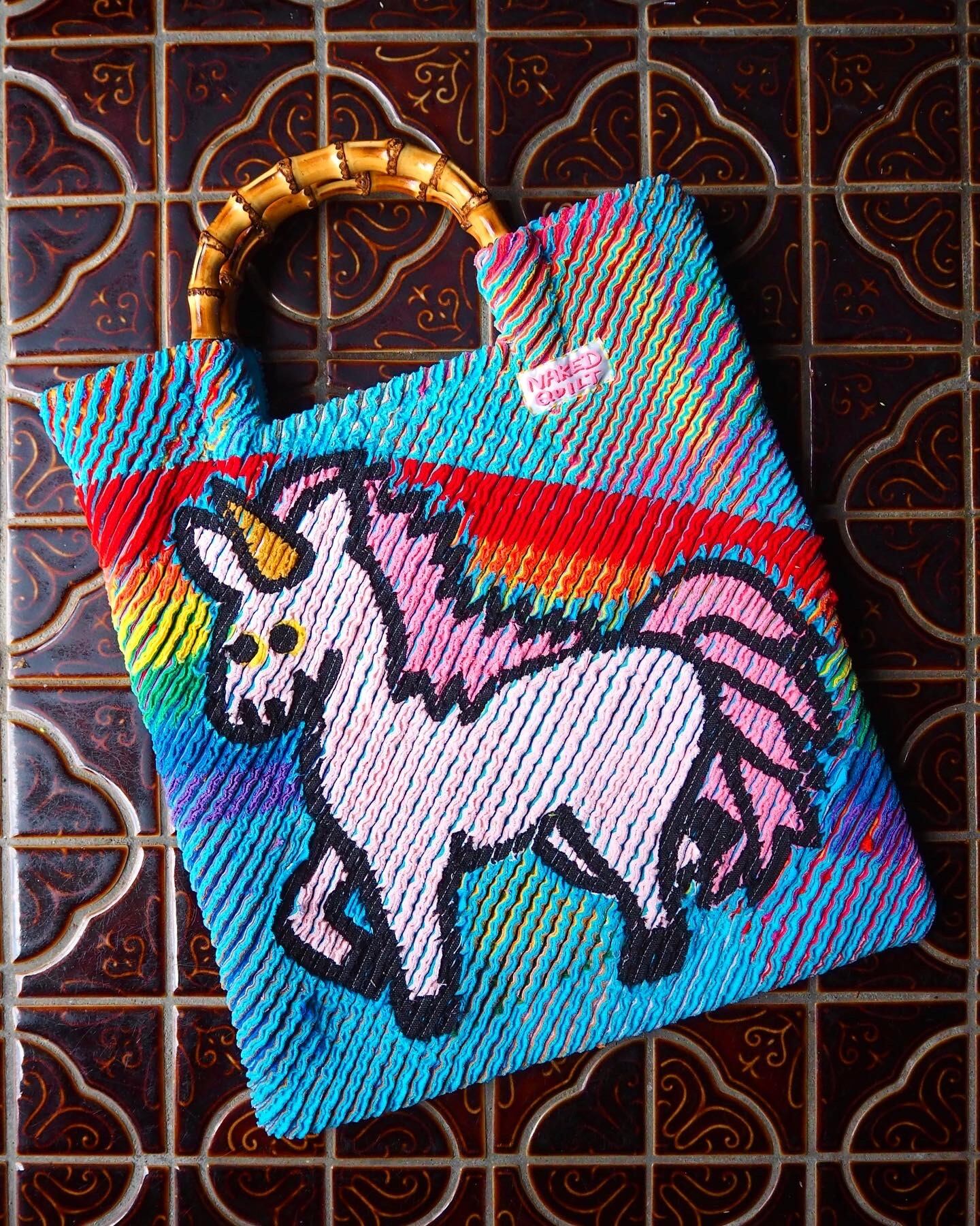 絵画を持ち歩くような形の、フラットなバンブーバッグです。