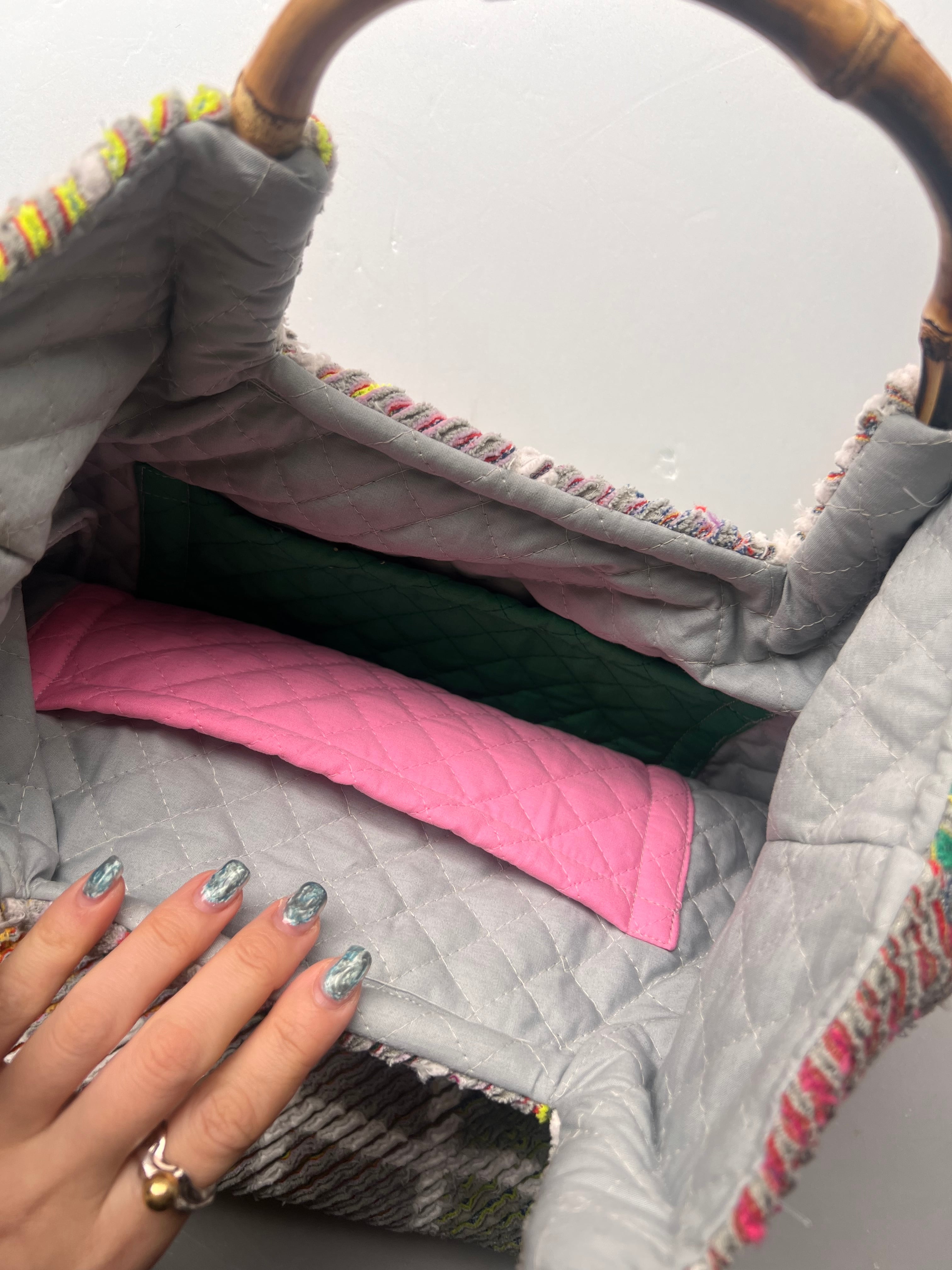 絵画を持ち歩くような形の、フラットなバンブーバッグです。