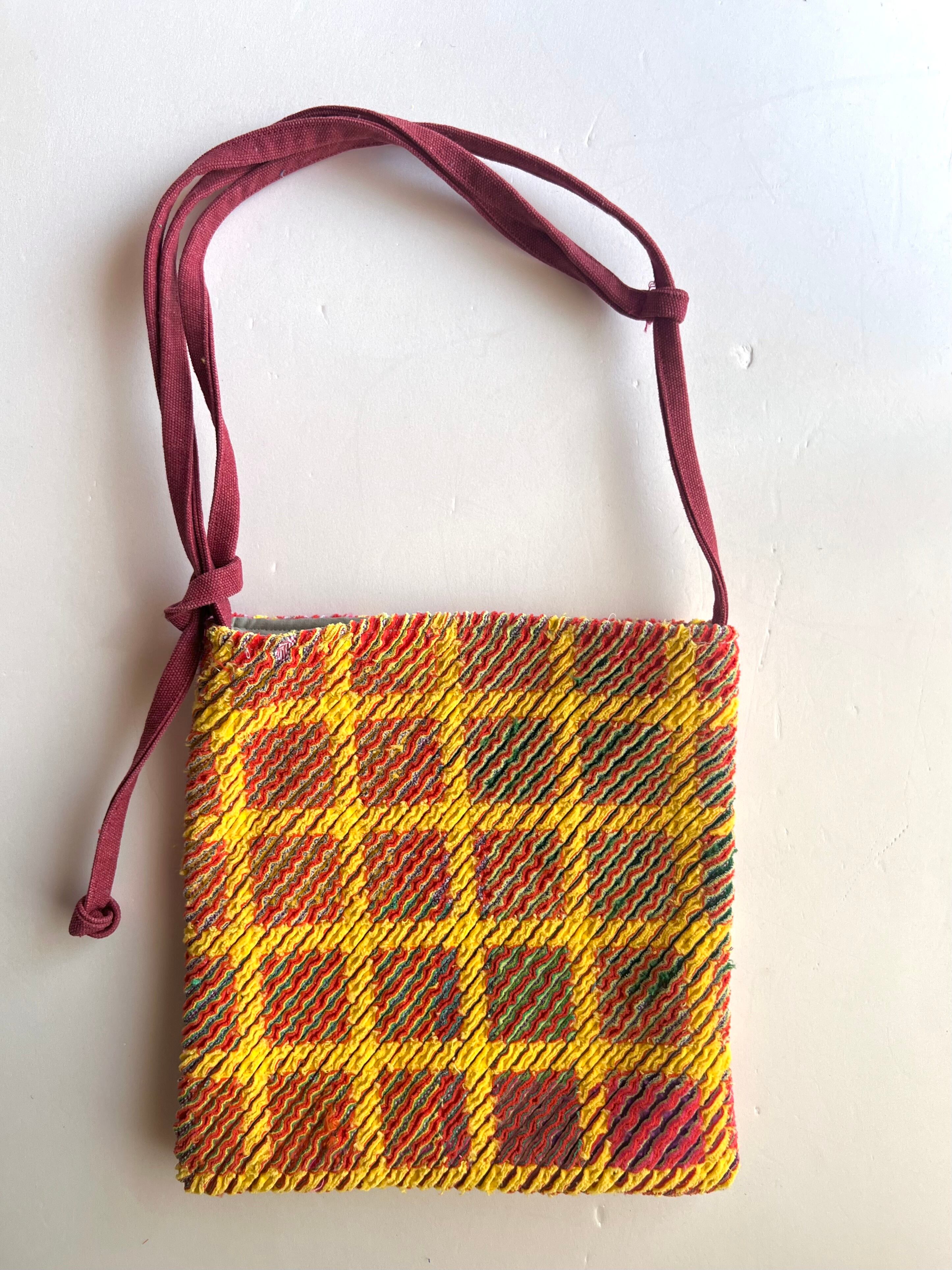ミドルスクエアサコッシュ◯ブルーリボン×レッドチェック