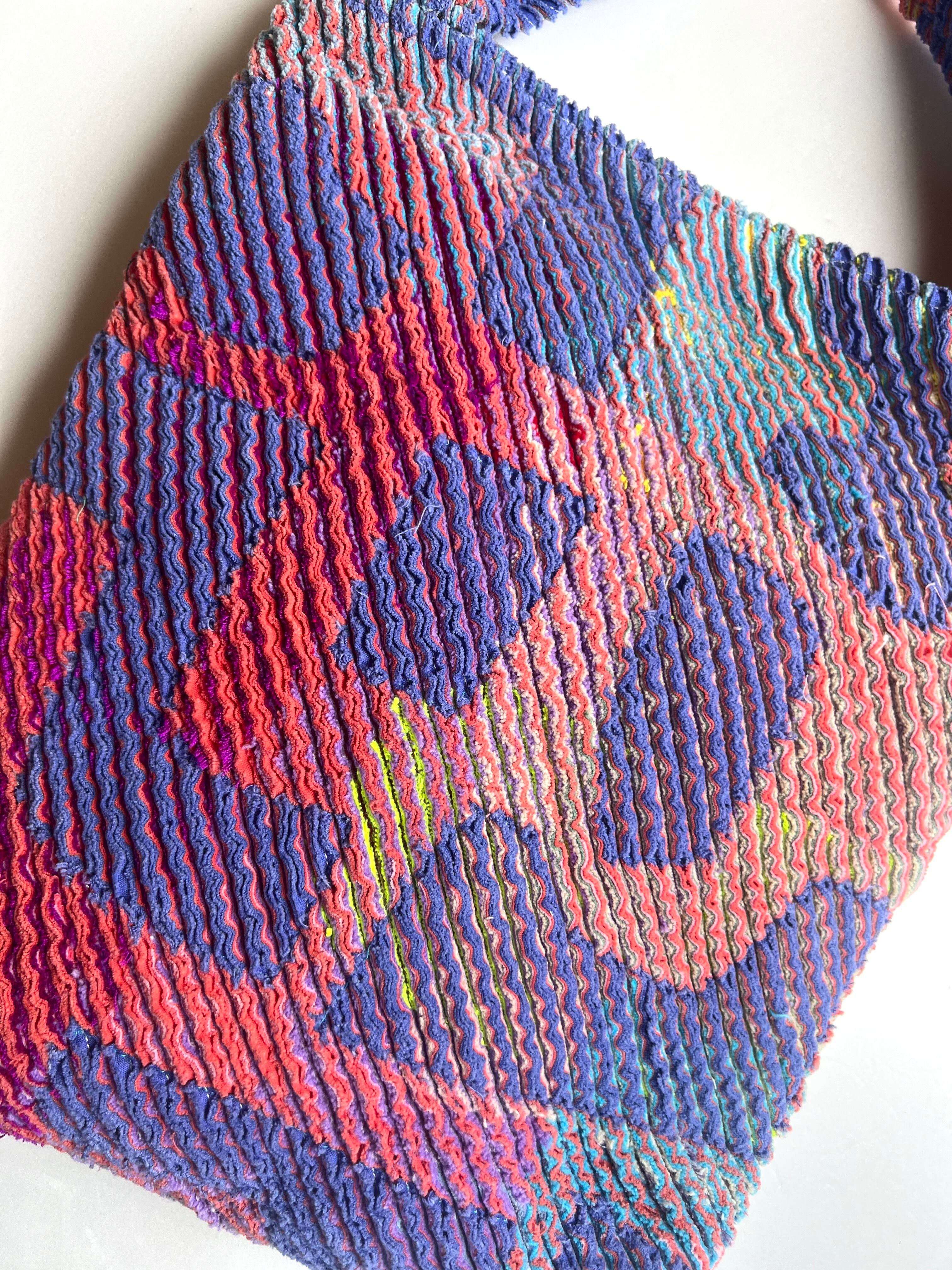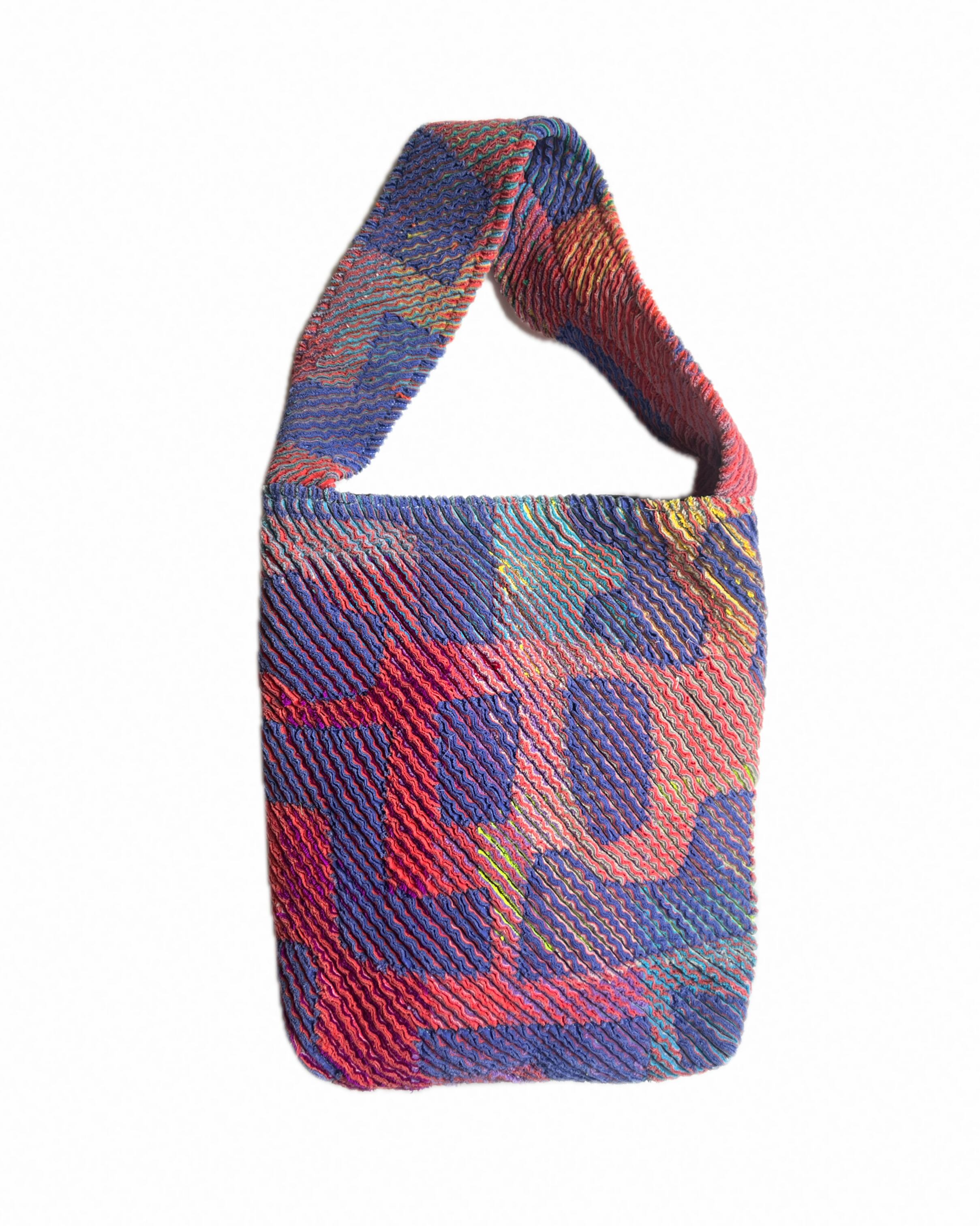 スラッシュキルトのワンショルダーバッグです。肩にかけるのに適した長さです。