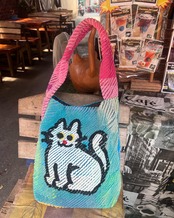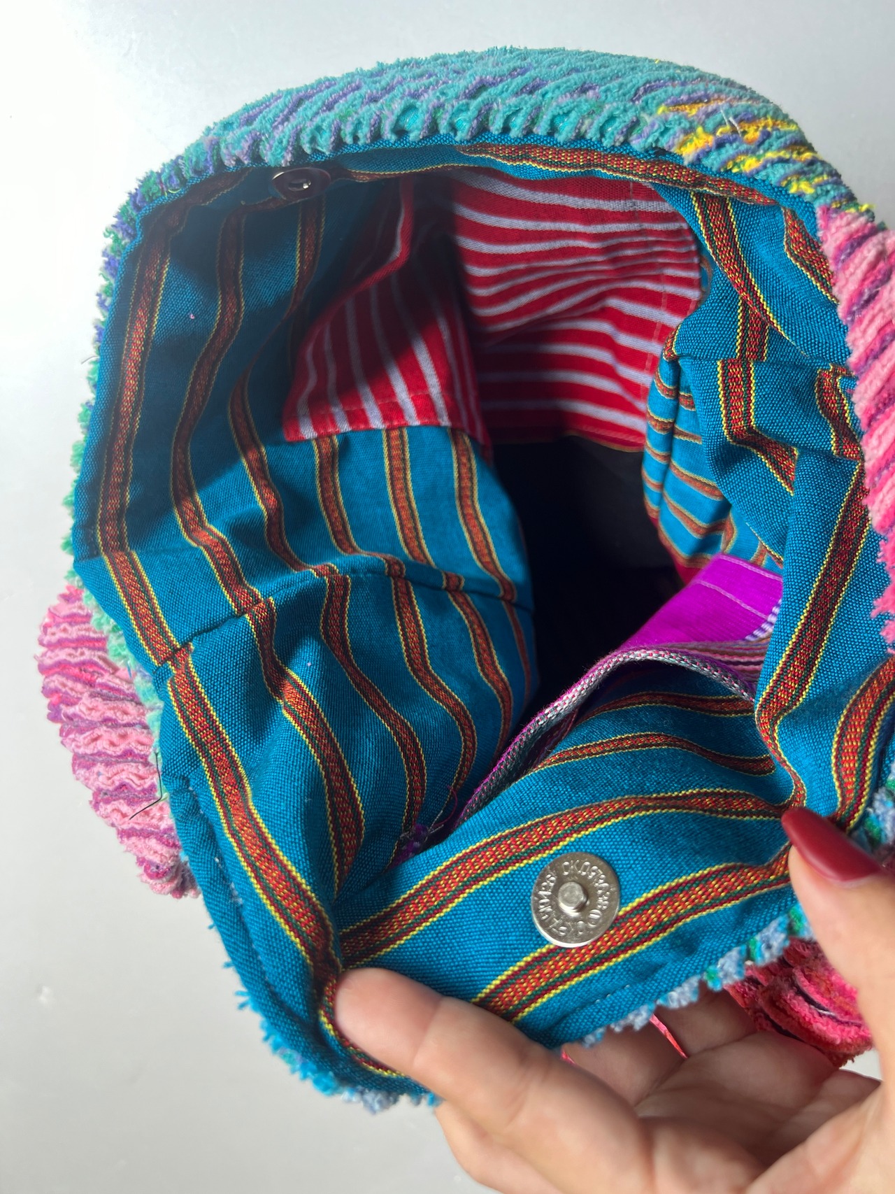 スラッシュキルトのワンショルダーバッグです。肩にかけるのに適した長さです。