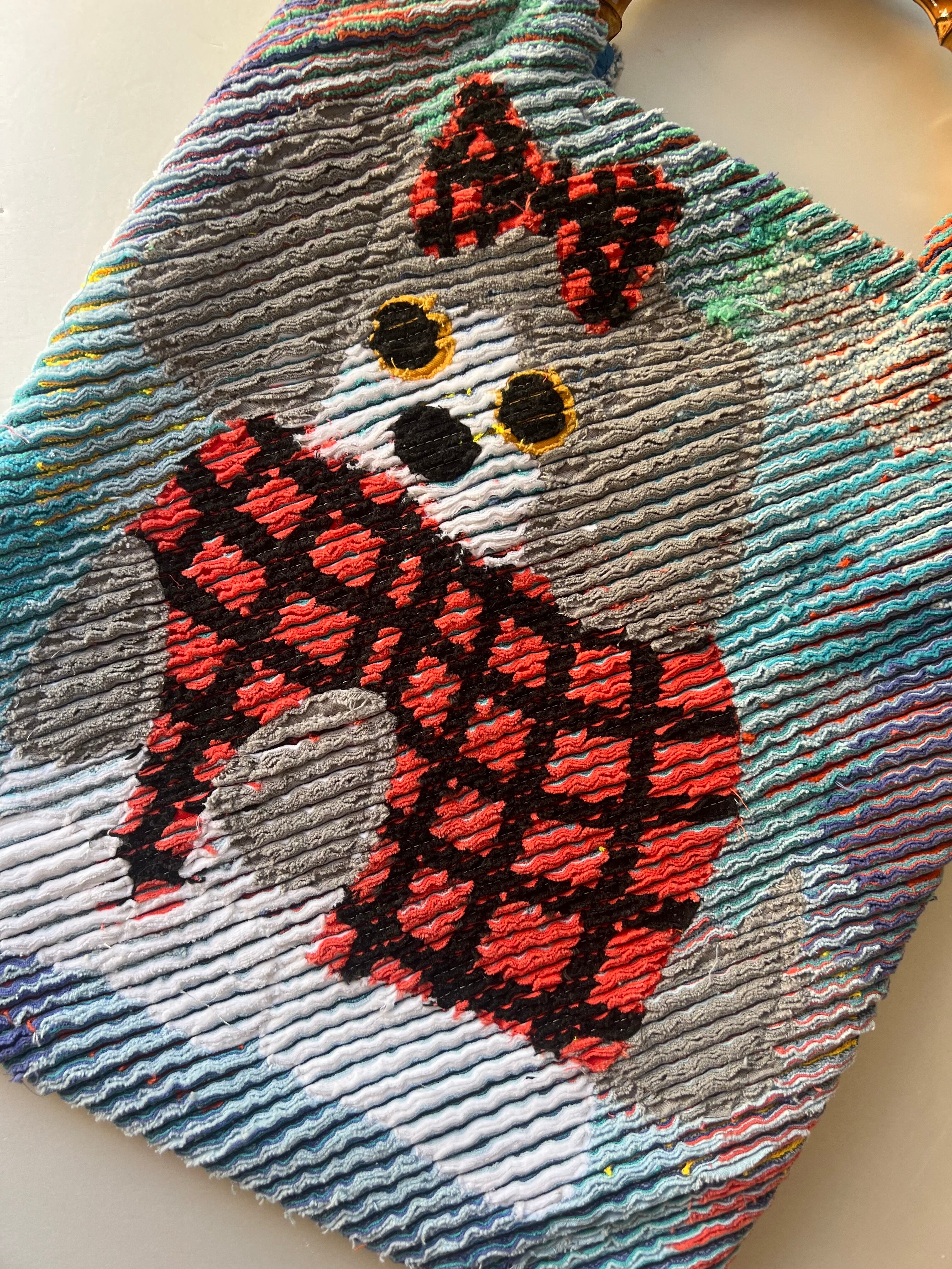 マチなしタイプで、絵画を持ち歩くような形のバンブーバッグ。