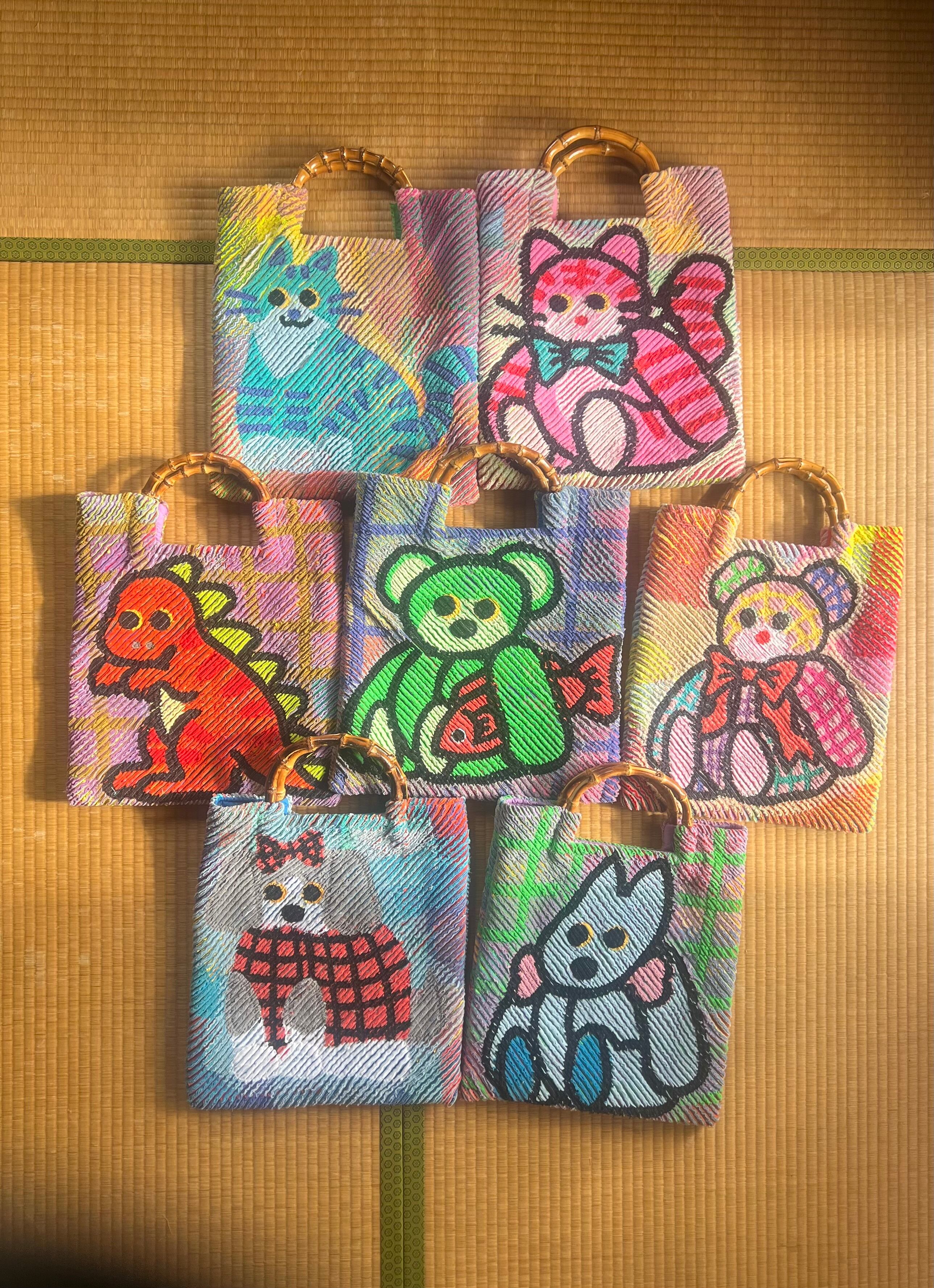 マチなしタイプで、絵画を持ち歩くような形のバンブーバッグ。